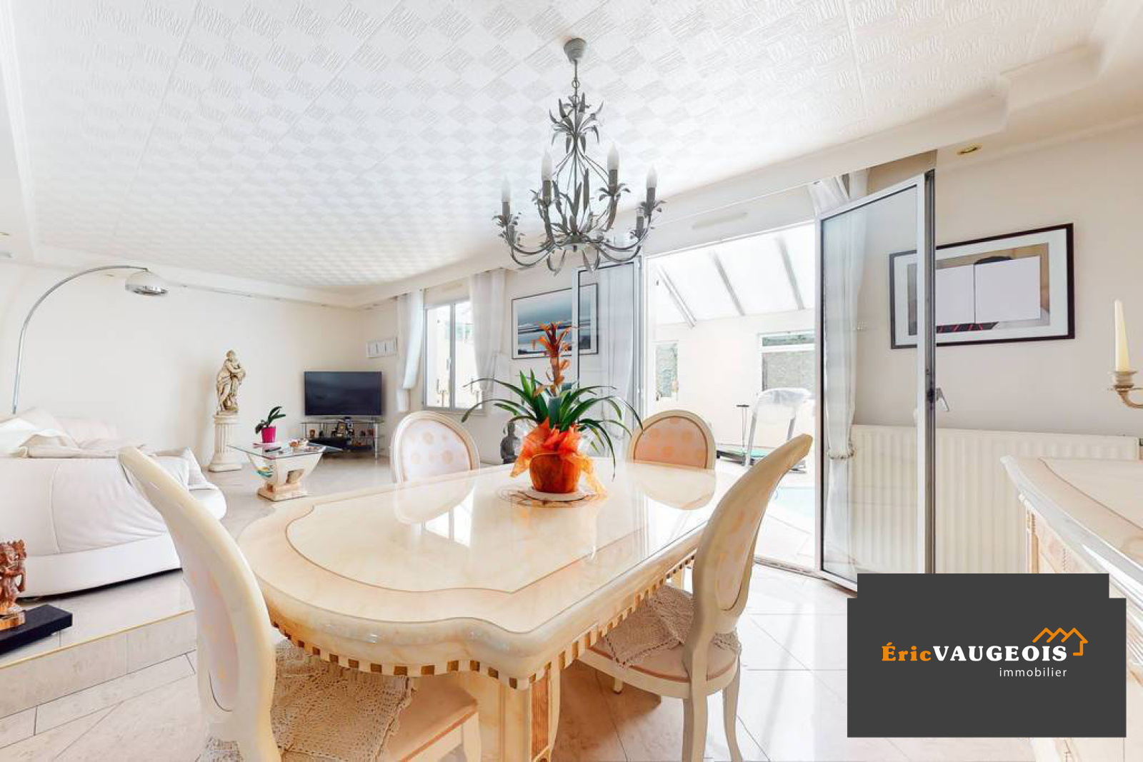 L'agence Eric VAUGEOIS immobilier à Coulommiers, au milieu de la rue piétonne. Eric VAUGEOIS vous propose cette maison individuelle de 1981 de plain-pied dans le village de Mortcerf (77163) proche de la gare et des commerces du centre ville. Elle se compose : Entrée - Cuisine aménagée et équipée ouverte - Grand séjour lumineux donnant sur une énorme véranda de 2003 de plus de 90 m² accueillant une piscine chauffée pour en profiter toute l'année - Dégagement - WC suspendu - Bureau - 2 belles chambres - Salle bains avec baignoire d'angle et douche. Garage - Atelier - Chaufferie. Terrasse de 28 m² avec abris. Terrain de plus de 900 m² plat, clos, au calme, arboré et sans vis-à -vis. Fenêtres double vitrage. Chauffage central gaz de ville avec production d'eau chaude. Portail alu motorisé. Internet par fibre très haut débit. Tout-à -l'égout conforme. Taxe foncière de 1000E/an. A visiter sans tarder !