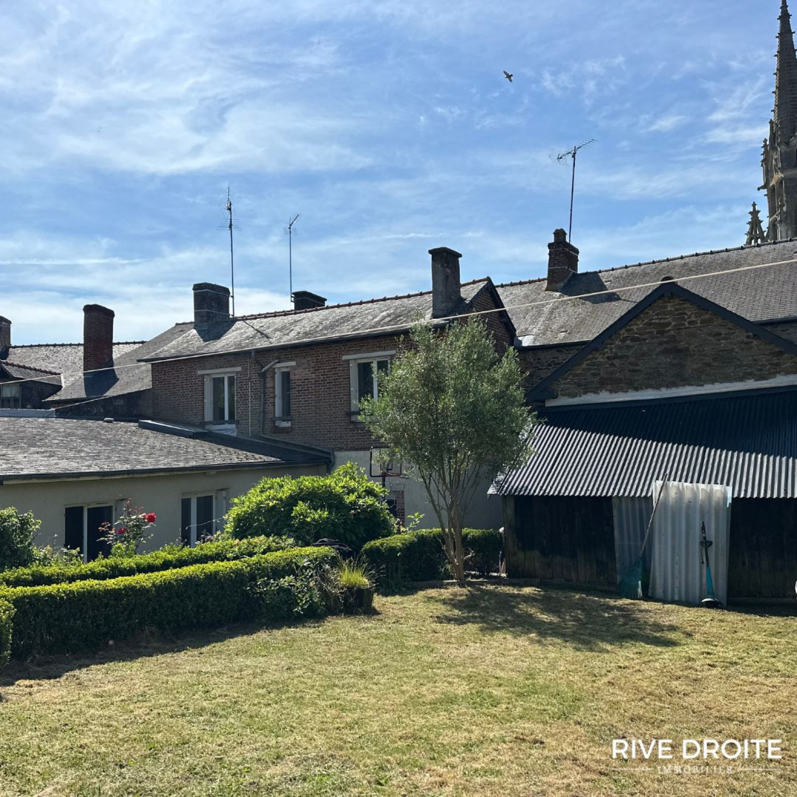 RIVE DROITE vous présente : ACIGNE CENTRE - A SAISIR - Pour INVESTISSSEUR ou Mixte RESIDENCE PRINCIPALE (maison) + PLACEMENT LOCATIF (Murs commerciaux) - IMMEUBLE en pierre d'une surface totale de 240m2 (hors dépendances) édifié sur 3 niveaux, en pleine propriété comprenant d'une part : Un local commercial d'environ 85m2 avec réserve (15m2) et vitrine sur rue actuellement loué 664€, et une maison d'habitation d'environ 140m2, A RENOVER sur 3 niveaux, comprenant: Au rez-de-chaussée une pièce de vie donnant sur terrasse et jardin et une cuisine. A l'étage : dégagement avec rangements, wc avec lave-mains, quatre chambres, salle d'eau. Au dernier niveau : un grenier composé de deux pièces. Une cour desservant : une cave, un garage, un atelier avec grenier au-dessus, un jardin clos et arboré- Parcelle d'environ 460m2. NOMBREUSES POSSIBILITES
