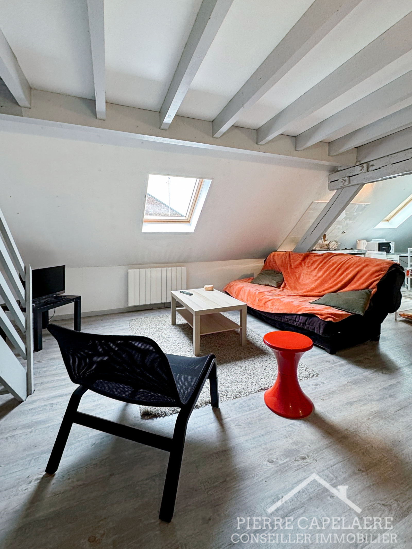 Studio de 44 m² de surface au sol (24,63 m² Loi Carrez) situé dans le centre de Lille, à deux pas du boulevard de la Liberté.