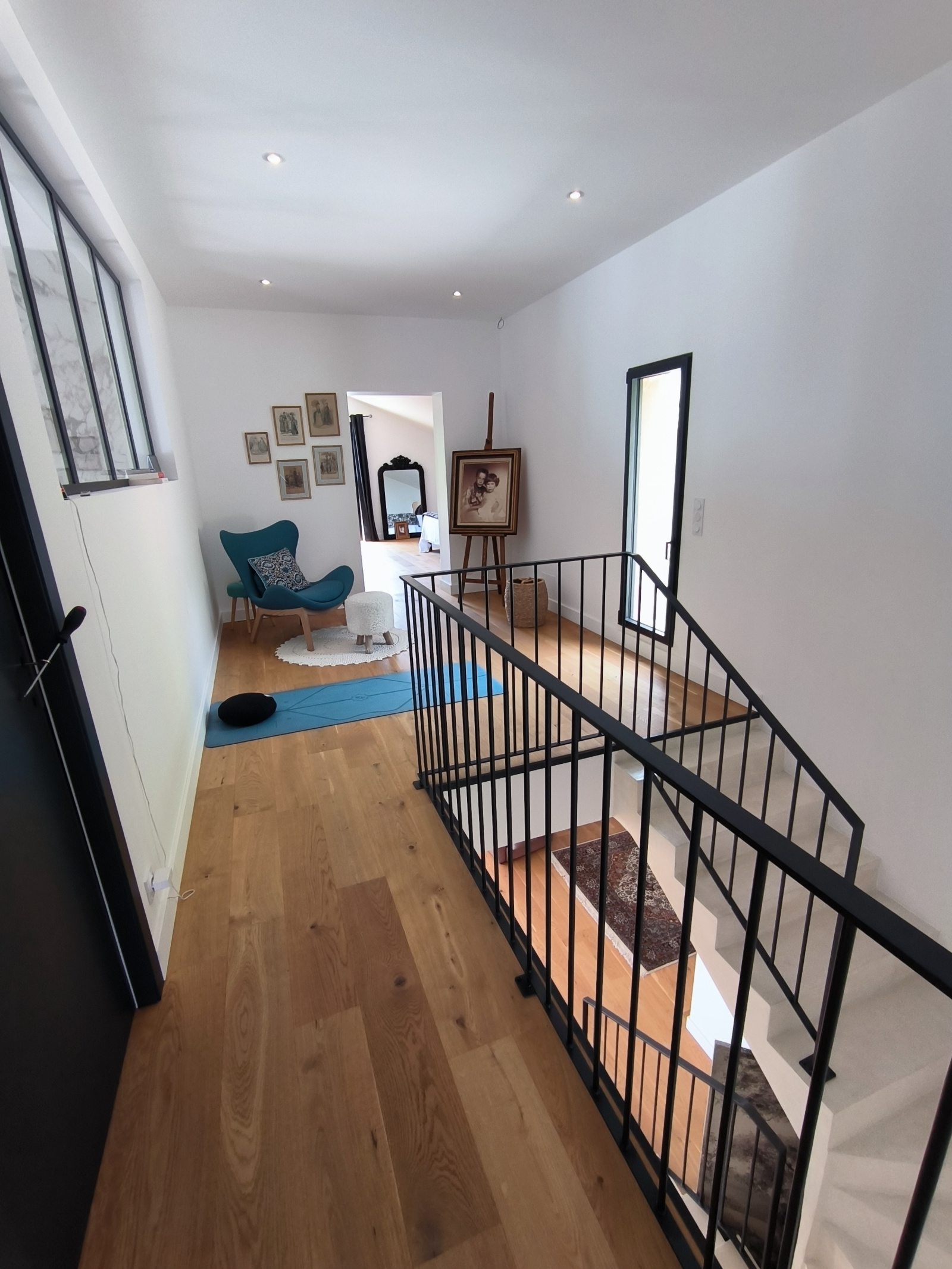 L'escalier menant à l'étage en béton ciré permet d'accéder à :