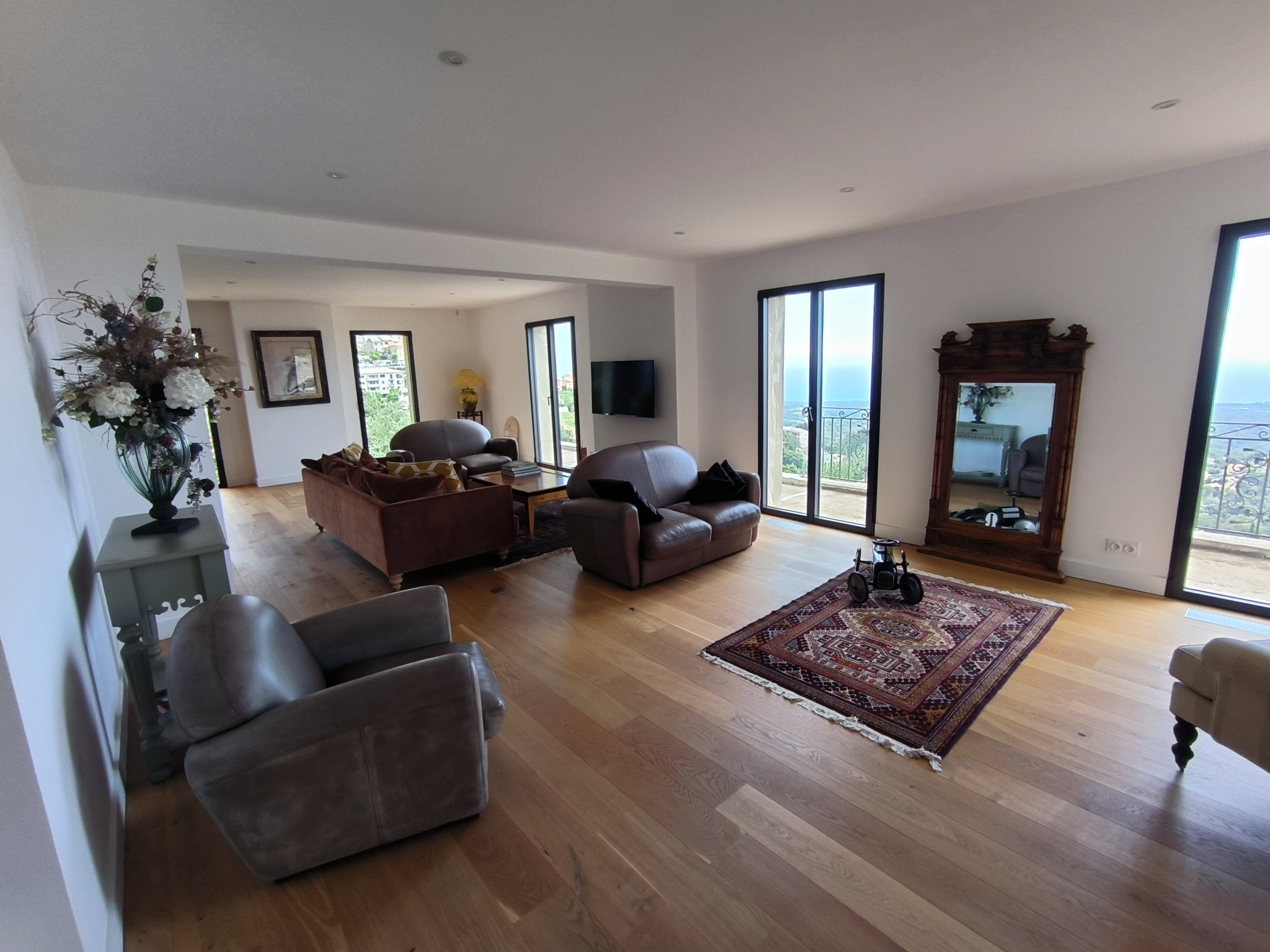 - Un vaste salon/séjour cuisine lumineux de 136m2 ouvrant sur la terrasse de 74m2 dominant la vallée et la mer