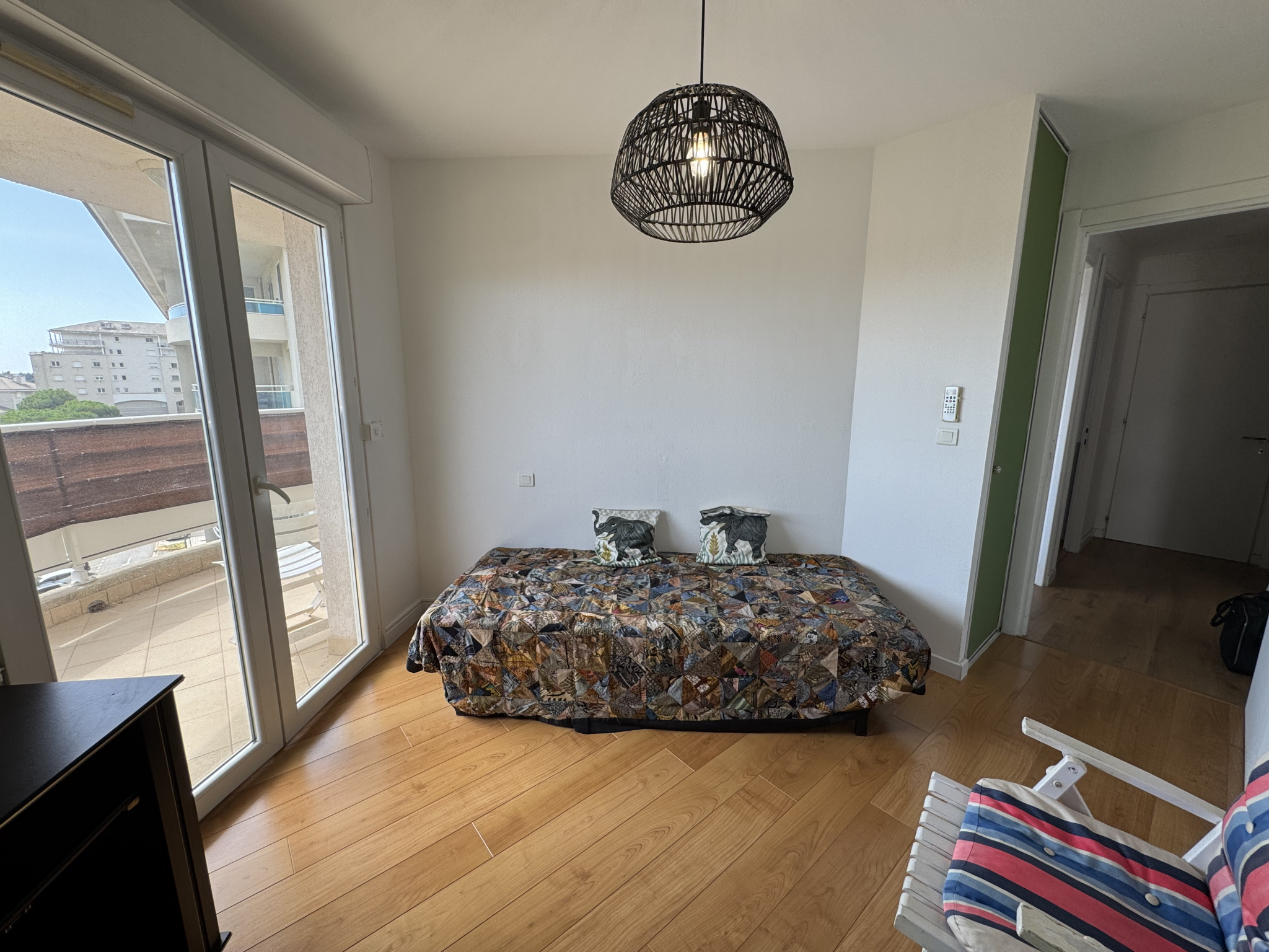La partie nuit comprend 3 chambres lumineuses dont 2 avec accès direct à une seconde terrasse et une plus spacieuse avec un placard mural, une salle d'eau rénovée en béton ciré, ainsi que les WC séparés également réalisés en beton ciré, pour maintenir une cohérence esthétique.