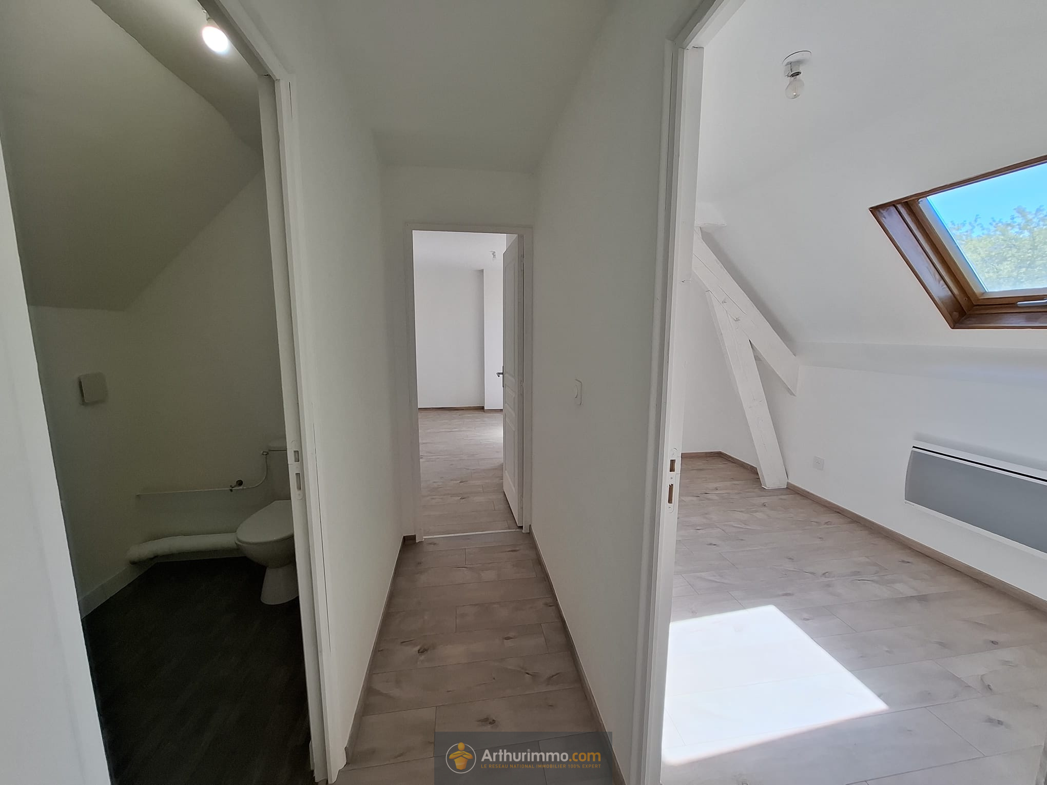 A l'étage: Palier, belle Chambre, Buro, SDE avec WC.