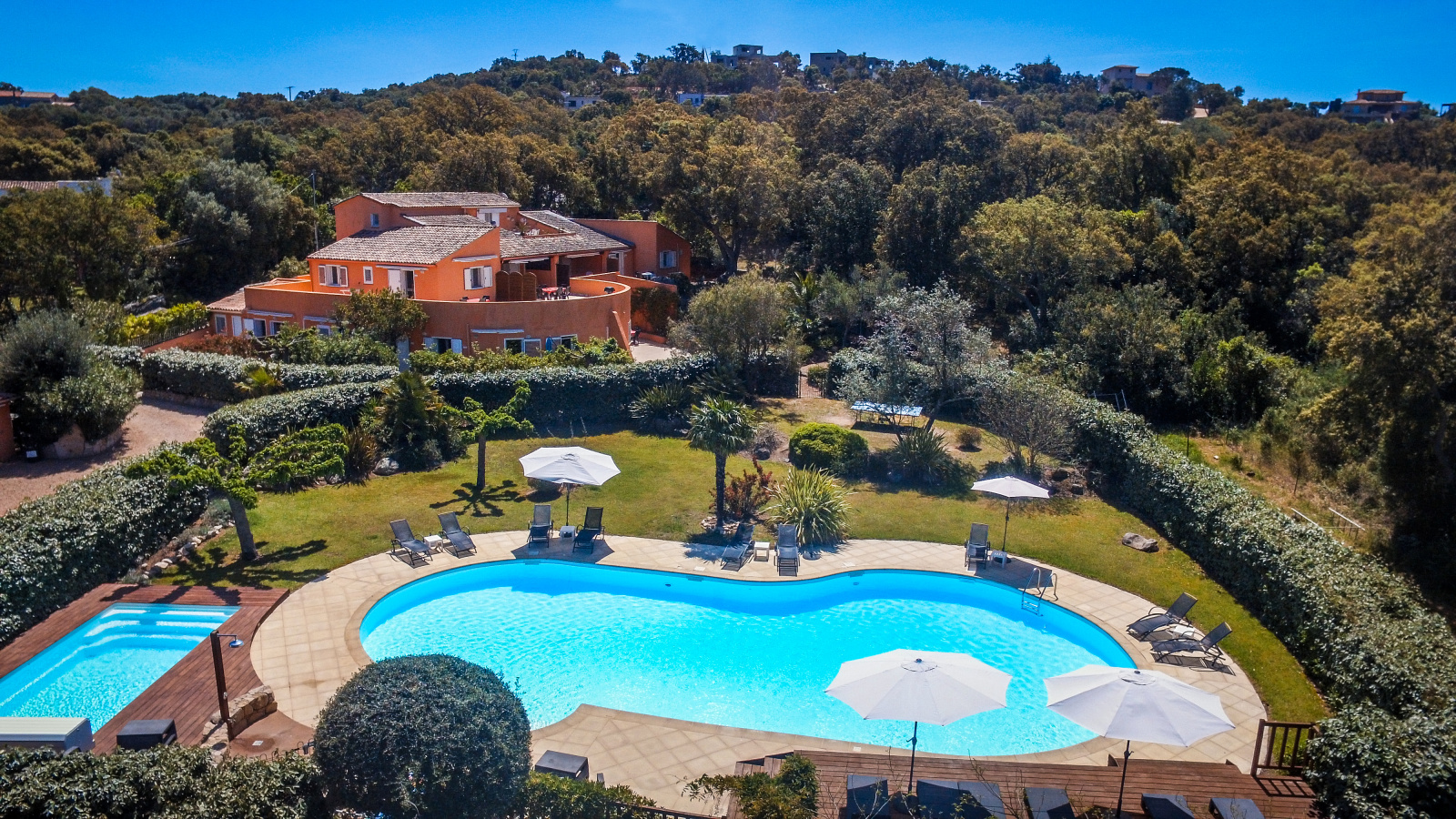 VENDU , cette magnifique résidence touristique est nichée au coeur d'un écrin de verdure au coeur du maquis à proximité de la mer, sur une parcelle paysagée et arborée de presque 7 000 m² . L'ensemble immobilier avec une superbe vue sur la nature Corse, comprend 10 appartements climatisés ; du studio au T 4 offrant des superficies de 28 à 88 m², ainsi qu'un local à usage d'accueil et un chalet à usage de remise / atelier. Les espaces extérieurs très bien entretenus, présentent une terrasse à usage privatif à chaque appartement ainsi que de nombreuses places de stationnement. Un espace clos et sécurisé offre aux résidents ; - deux piscines l'une de 8 par 10 et la seconde chauffée de 4 par 6 avec nage à contre courrant, - un deck équipé de transats et parasols ainsi qu'une aire pelousée de détente. Je suis à votre disposition pour tous renseignements complémentaires et vous faire visiter ce bien. N'hésitez pas à me contacter.