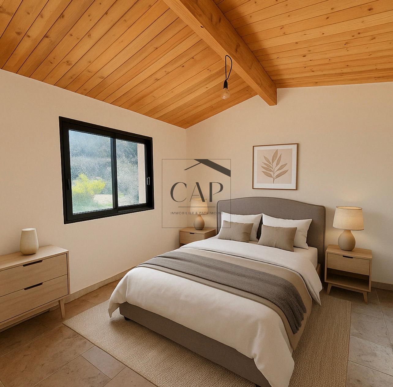 CAP Immobilier & Patrimoine VOUS PROPOSE une superbe villa individuelle en pierres / bergerie, de plain pied type T3, située dans un cadre idyllique et calme. Spacieuse, d’une surface de 84 m², cette propriété s’étend sur un terrain paysagé de plus de 500m² avec une exposition plein Sud.