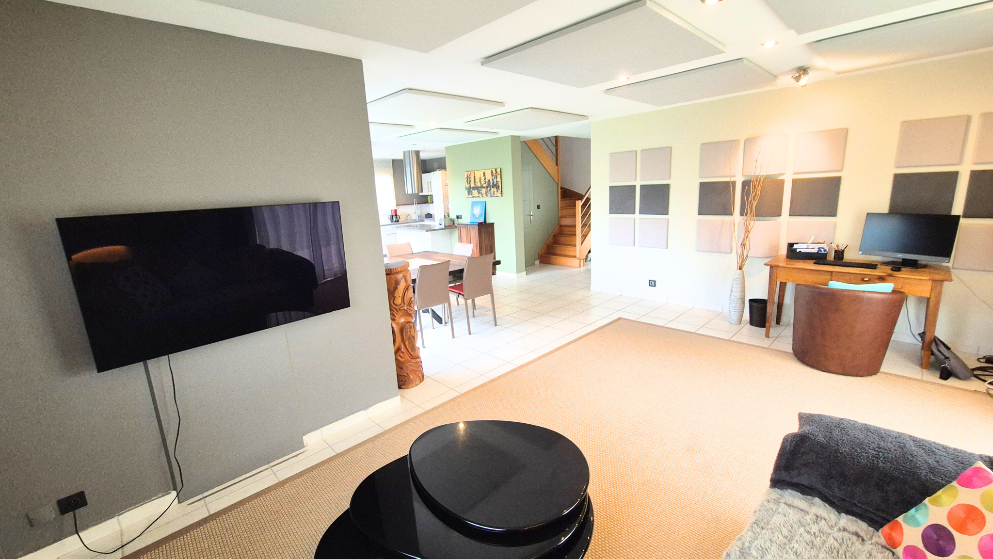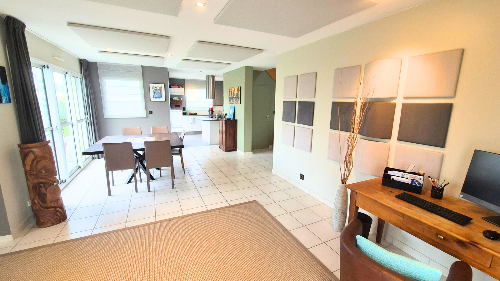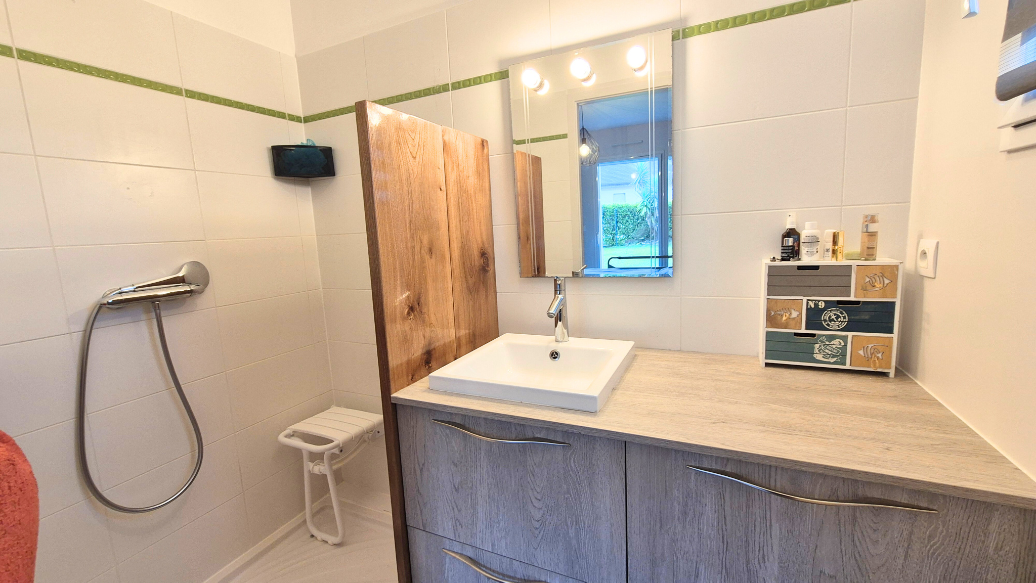 Au rdc , vous disposez d'une belle entrée, d'un grand séjour salon prolongé par la cuisine moderne et le cellier. On apprécie aussi la chambre spacieuse et sa salle d'eau privative.