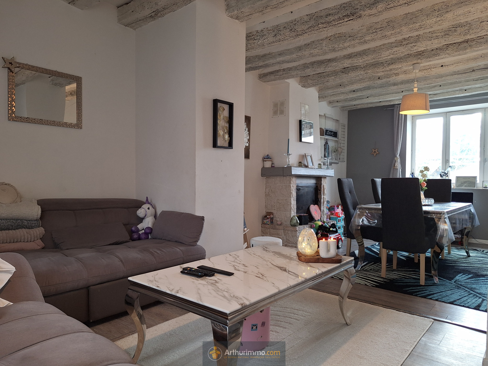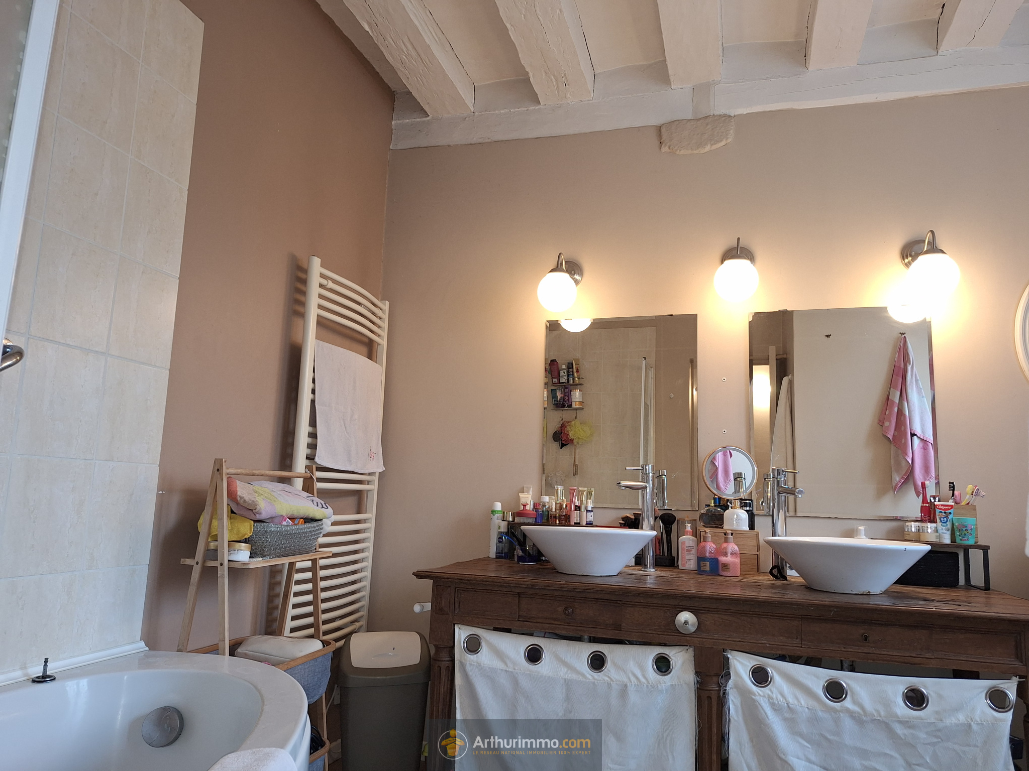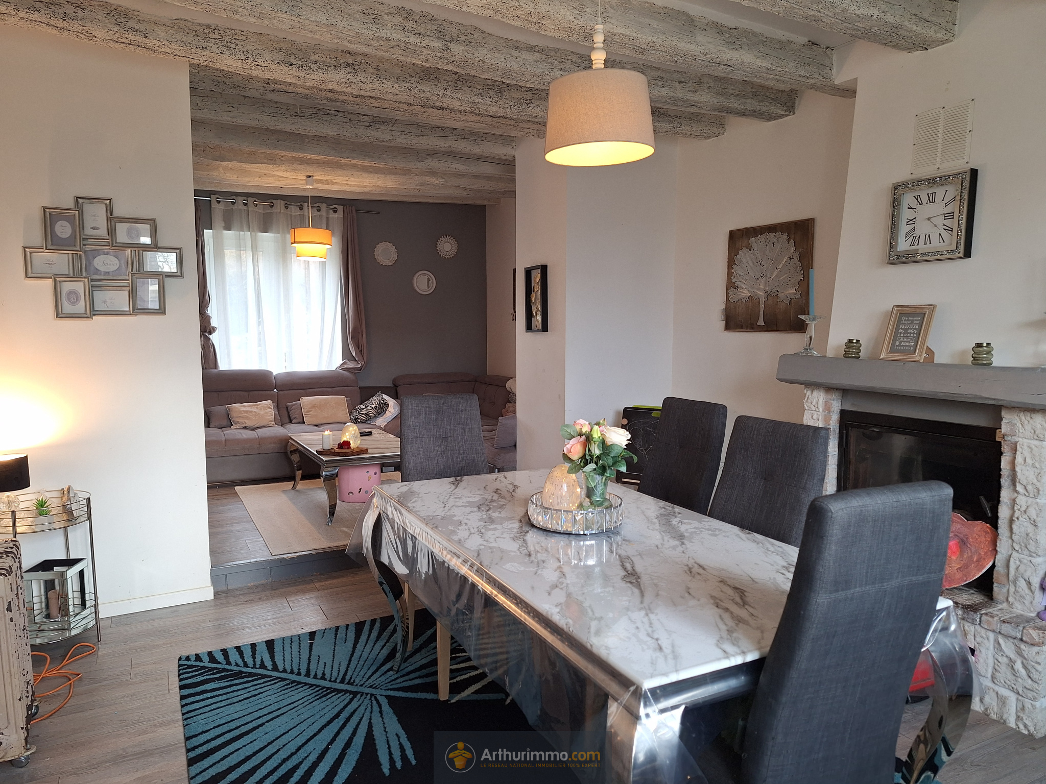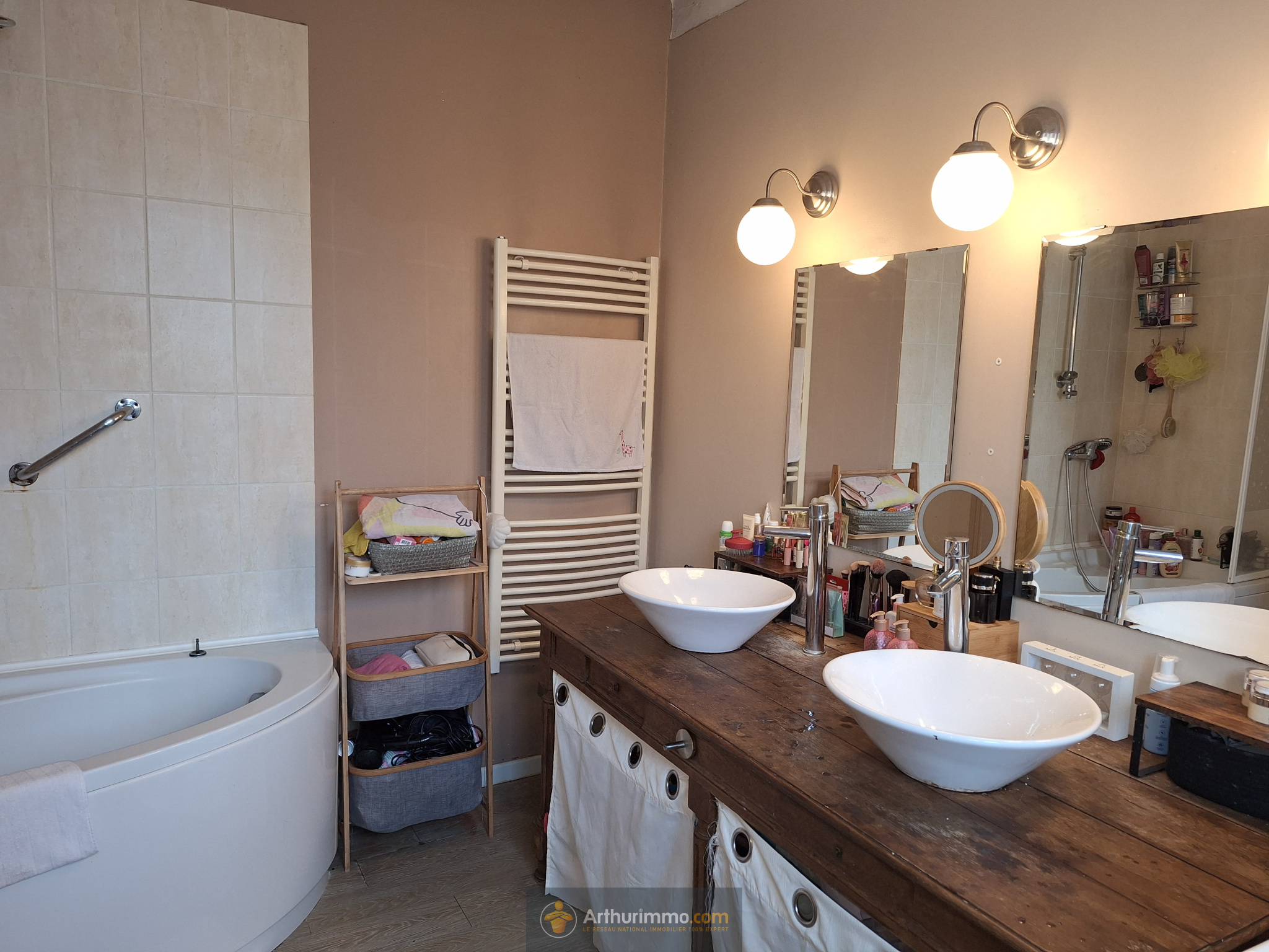 au rez-de-chaussée : entrée, cuisine équipée récente, double-séjour TRAVERSANT avec CHEMINÉE INSERT, grande salle de bains équipée de double vasque, wc indépendant.