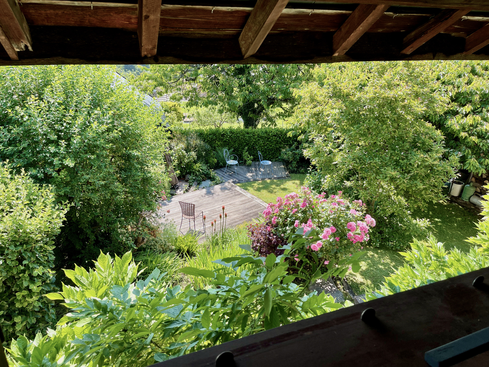 - un jardin arboré avec 3 terrasses (env. 180 m2)