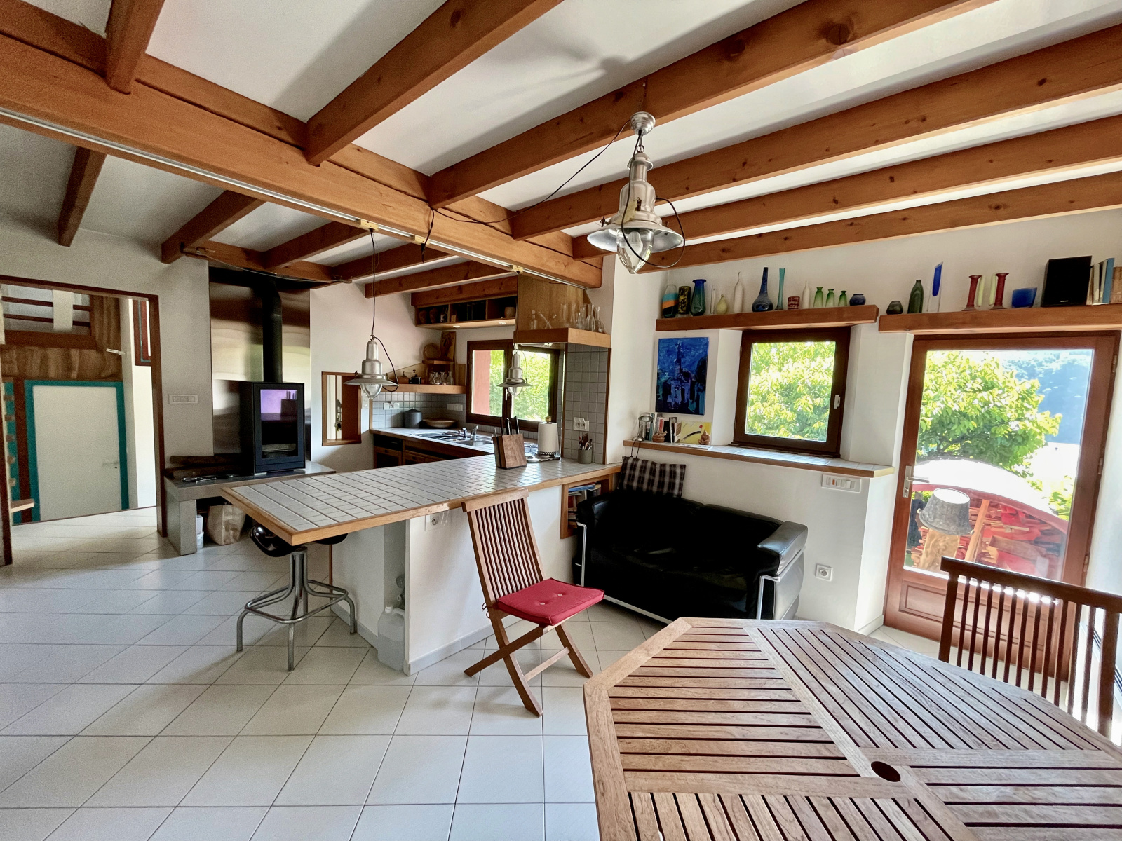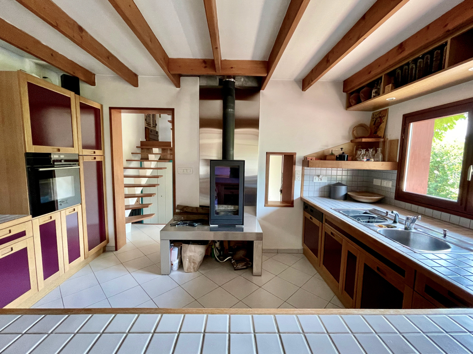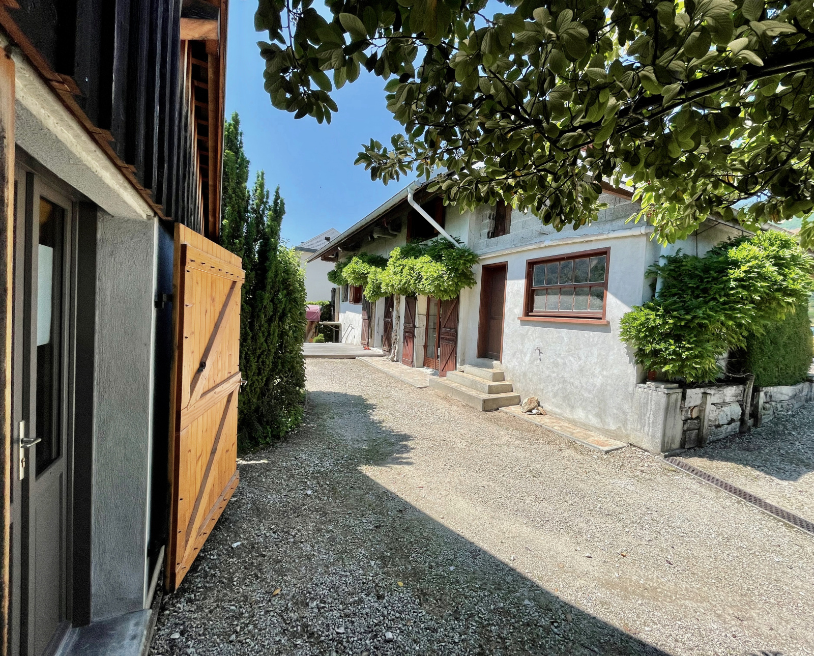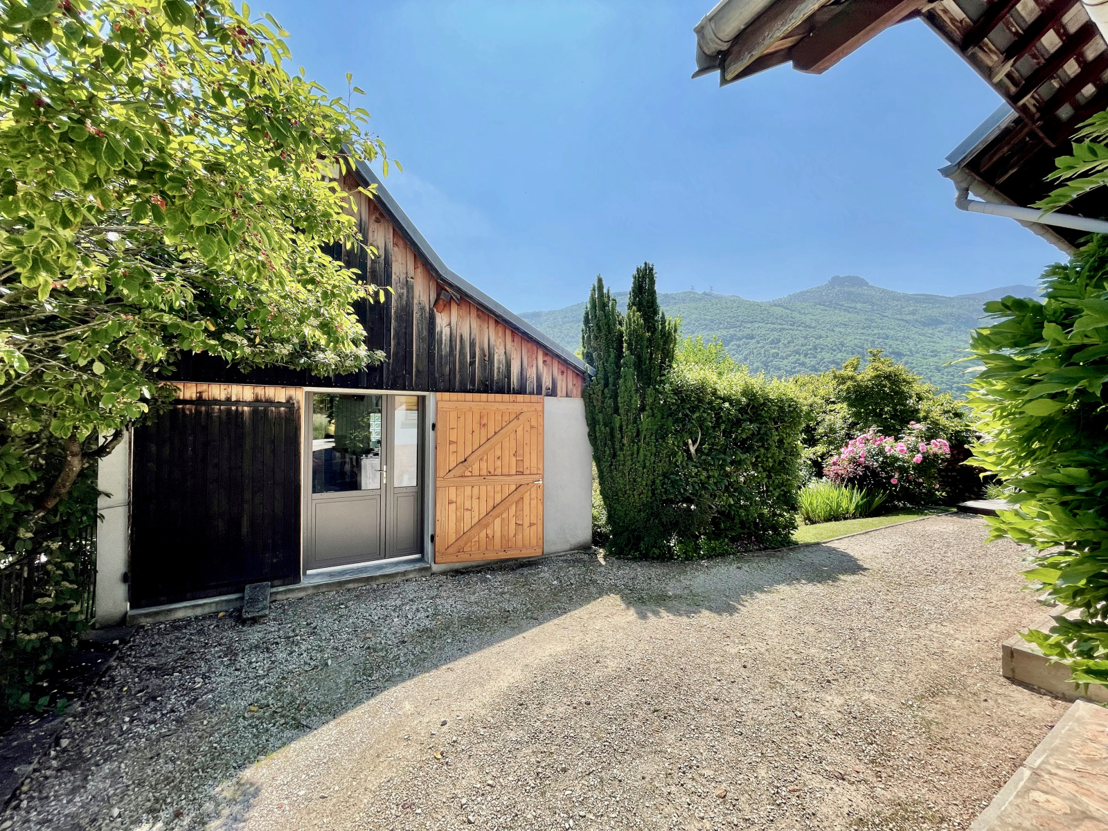 En exclusivité, à Vimines, sur les hauteurs de Chambéry, en Savoie, cet ancien corps de ferme est composé d’une maison d’habitation au charme fou - 5 pièces, 3 chambres - d’un garage attenant, d’un jardin magnifiquement arboré et d’un atelier d’artiste, très lumineux, avec salle de bain et mezzanine.