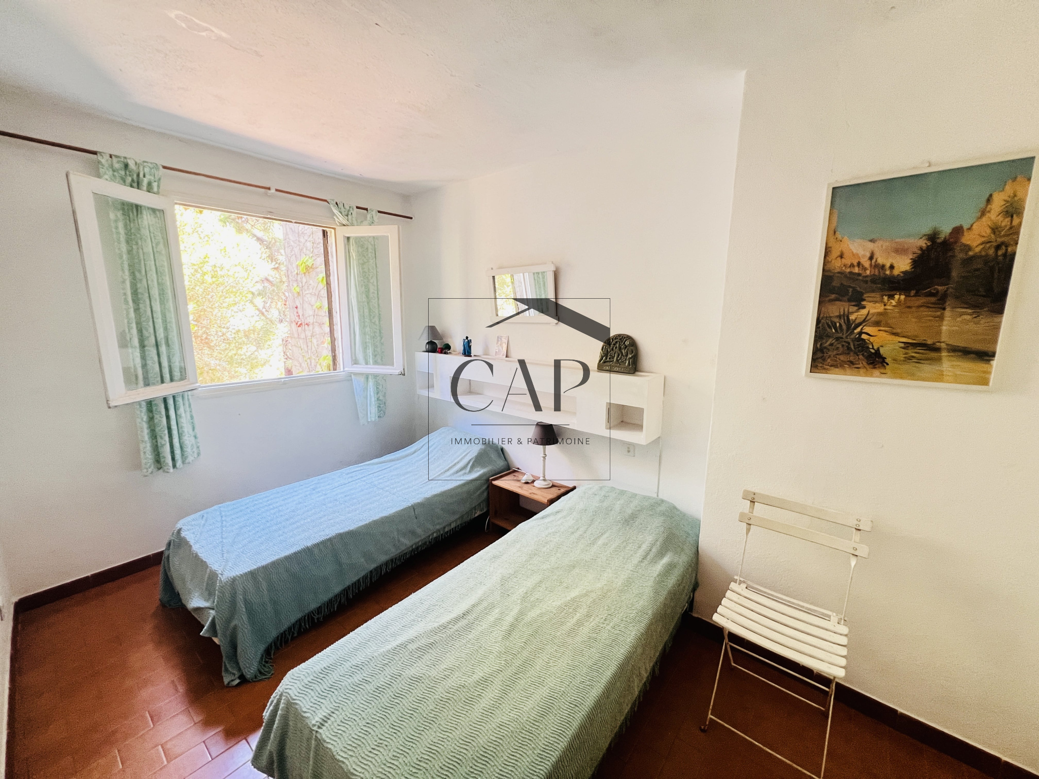 Au premier étage : deux chambres dont une avec terrasse privative, une salle de bains/WC.