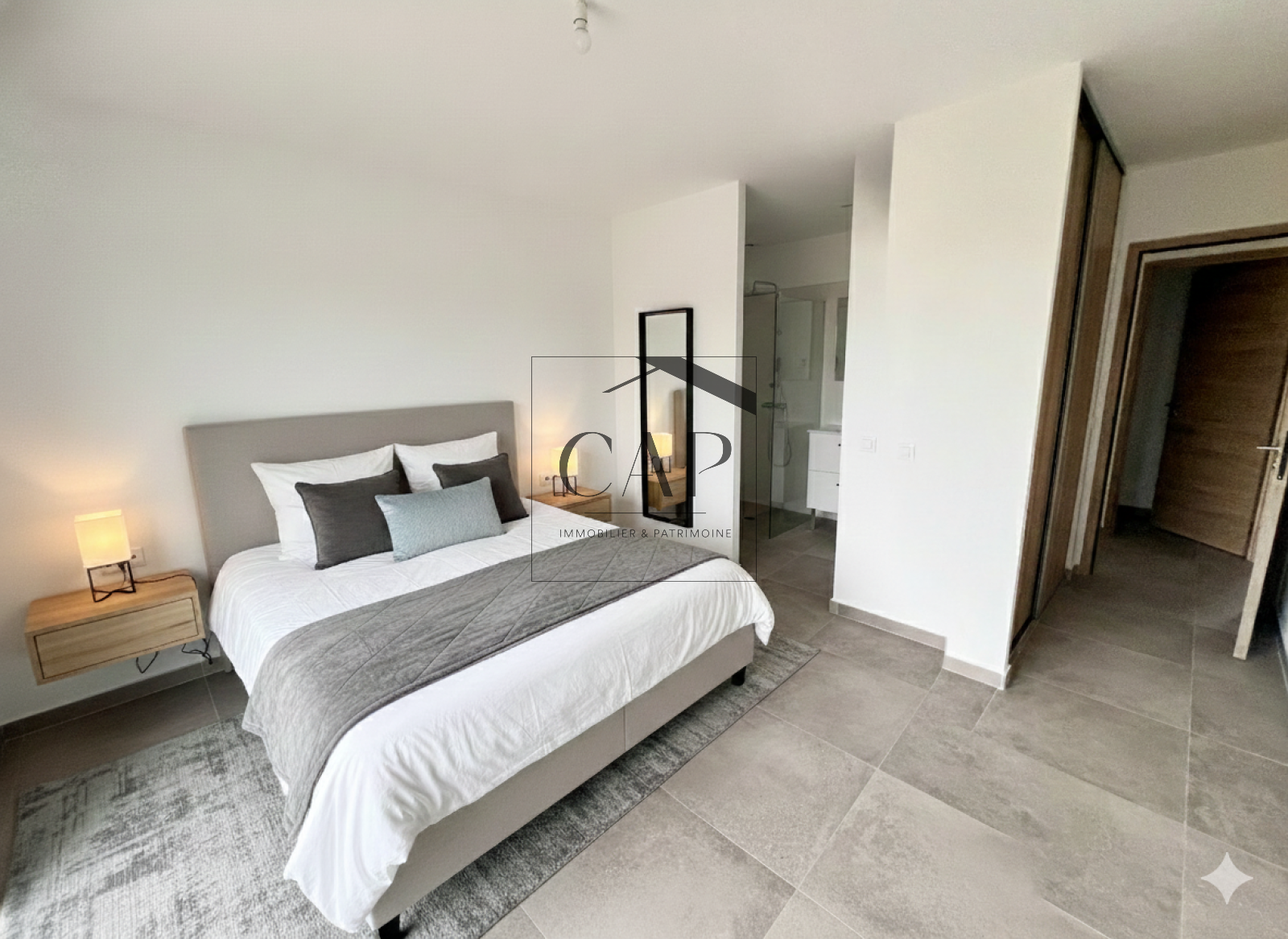 Idéalement positionnée sur les hauteurs d’une petite résidence neuve, la villa bénéficie d’un environnement calme en hauteur.