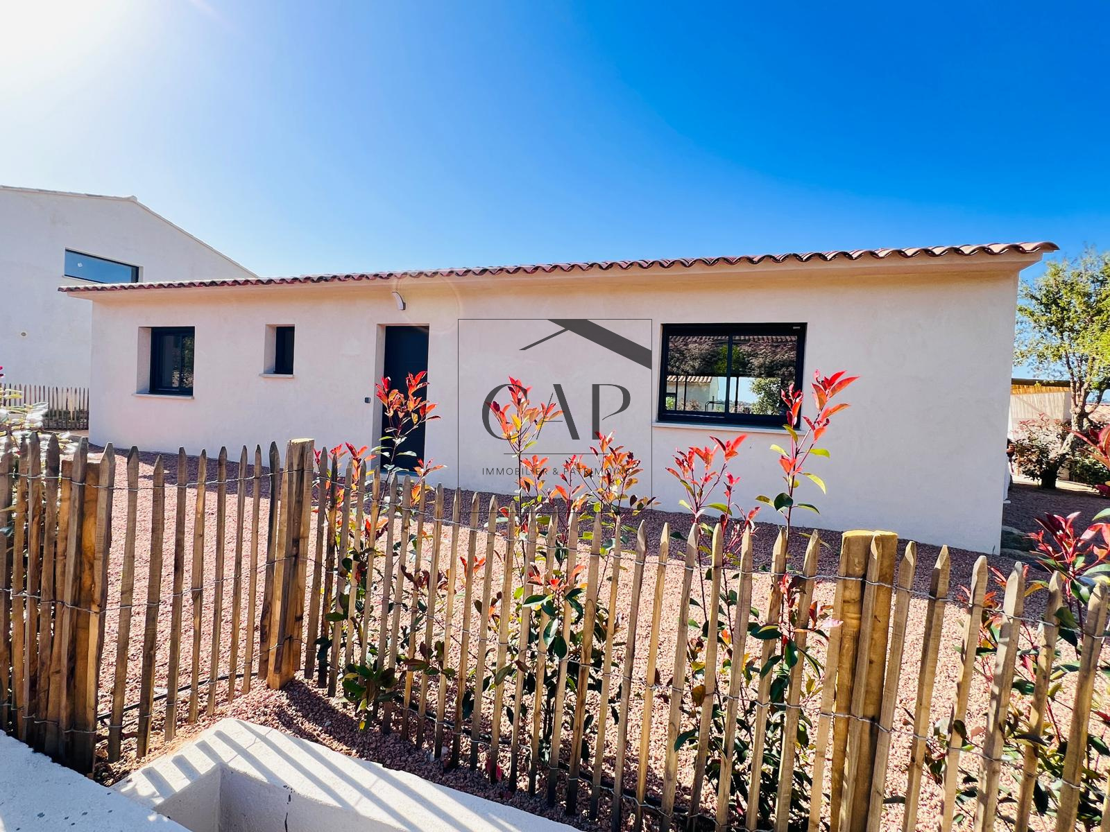CAP Immobilier & Patrimoine vous propose à la vente cette belle villa individuelle T4 neuve de 114 m² habitables, avec jardin privatif de 660 m², à Sainte Lucie de Porto-Vecchio – 20144.