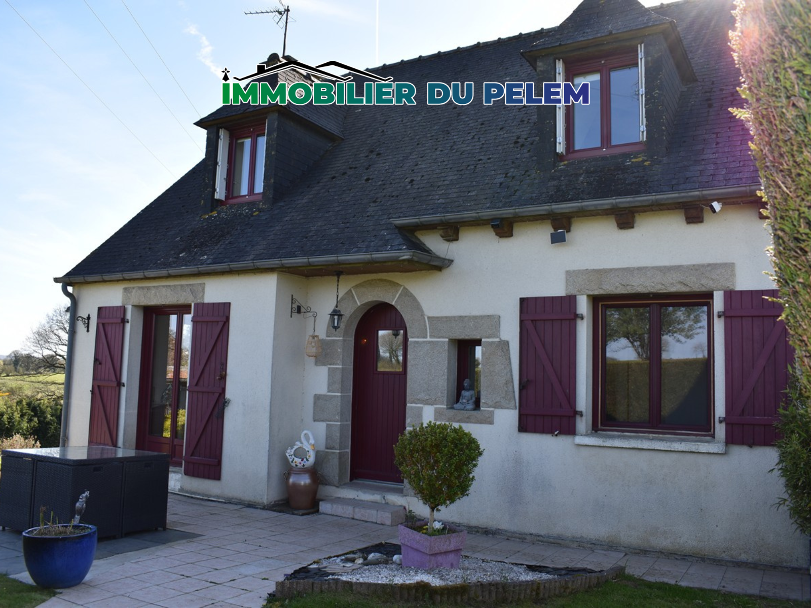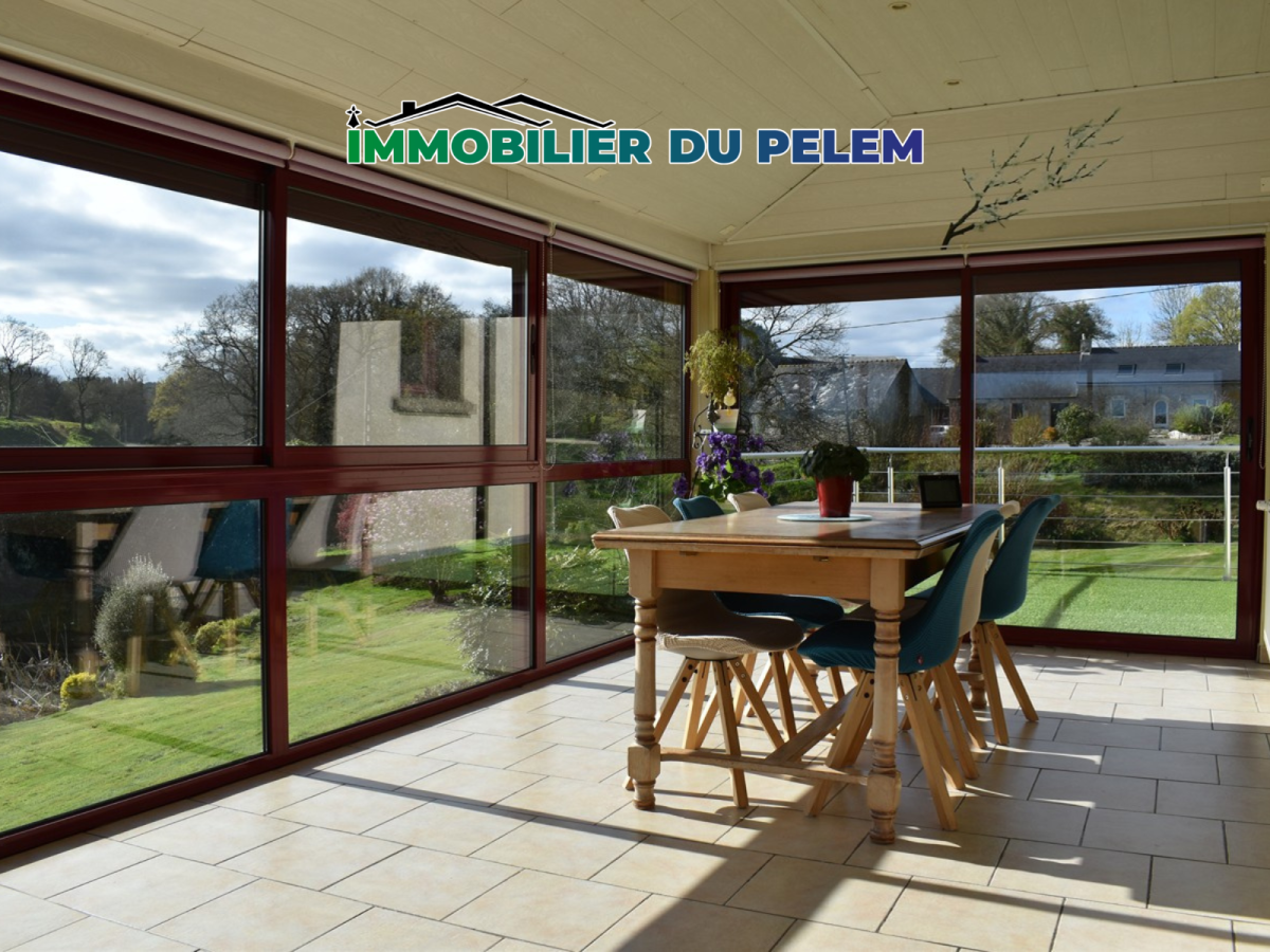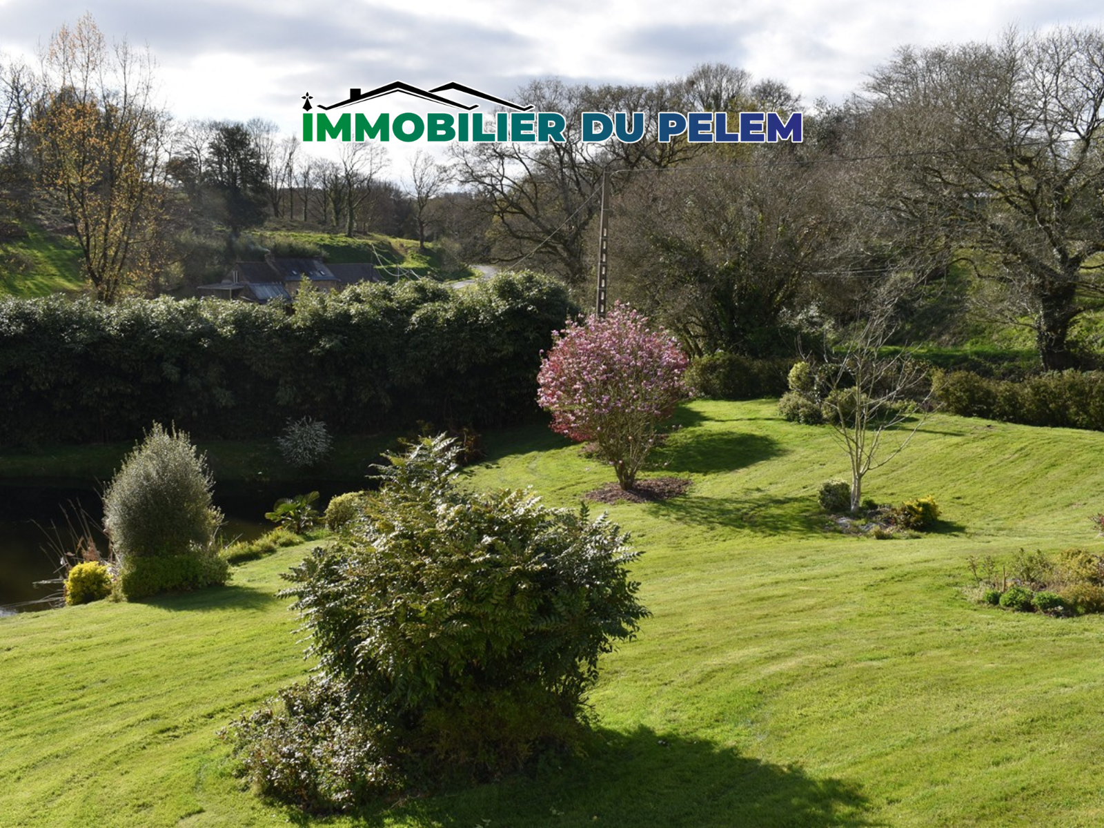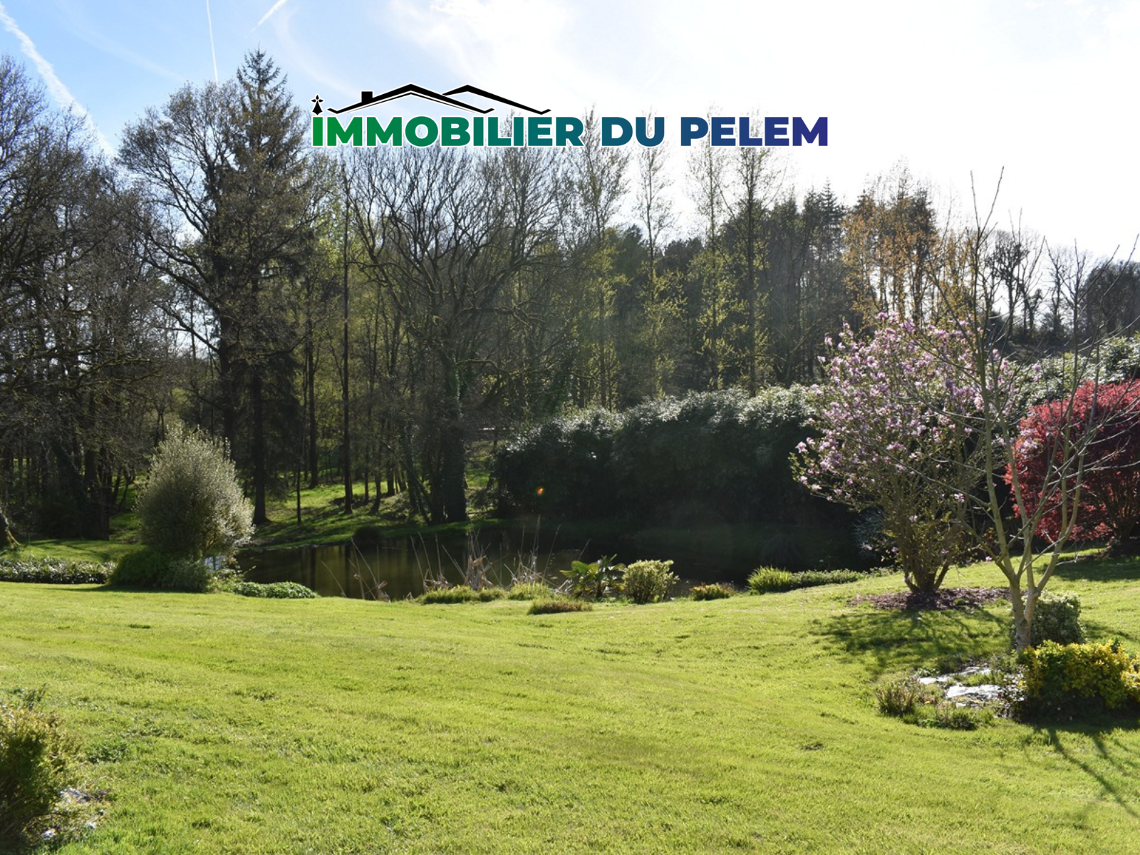 - d'une maison d'habitation Néo-bretonne offrant une vie possible de plain-pied avec sa vue panoramique depuis la véranda et la terrasse, sur le jardin, l'étang d'environ 2000m² et son ruisseau en contre-bas.