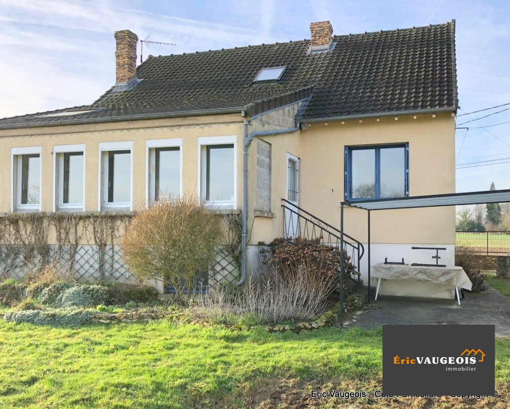 L'agence Eric VAUGEOIS immobilier à Coulommiers au milieu de la rue piètonne. Eric VAUGEOIS vous propose cette maison T6 de 130 m² située dans le village de DAGNY (77320) à 5 min de la N4. Elle se compose : Entrée - Cuisine aménagée et équipée - Sejour double très lumineux avec cheminée - 2 chambres - Salle d'eau - WC séparé. A l'étage : Dégagement - 2 chambres - Bureau ou petite chambre - Salle d'eau avec WC. Sous -sol total avec son Garage, Buanderie, Atelier, Cuisine d’été, Chaufferie. Raccordement au tout-à -l'égout conforme. Chauffage central au fuel. Le tout sur un terrain de 524 m² environ clos, plat, au calme et sans vis-à -vis. Taxe foncière de 980 E/an. A visiter sans tarder !!