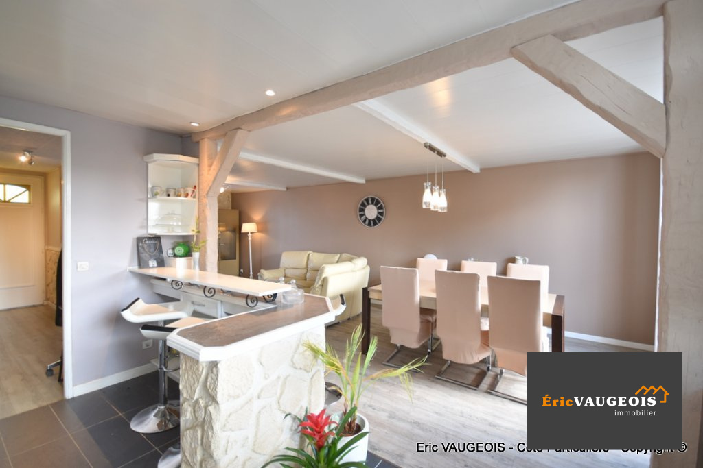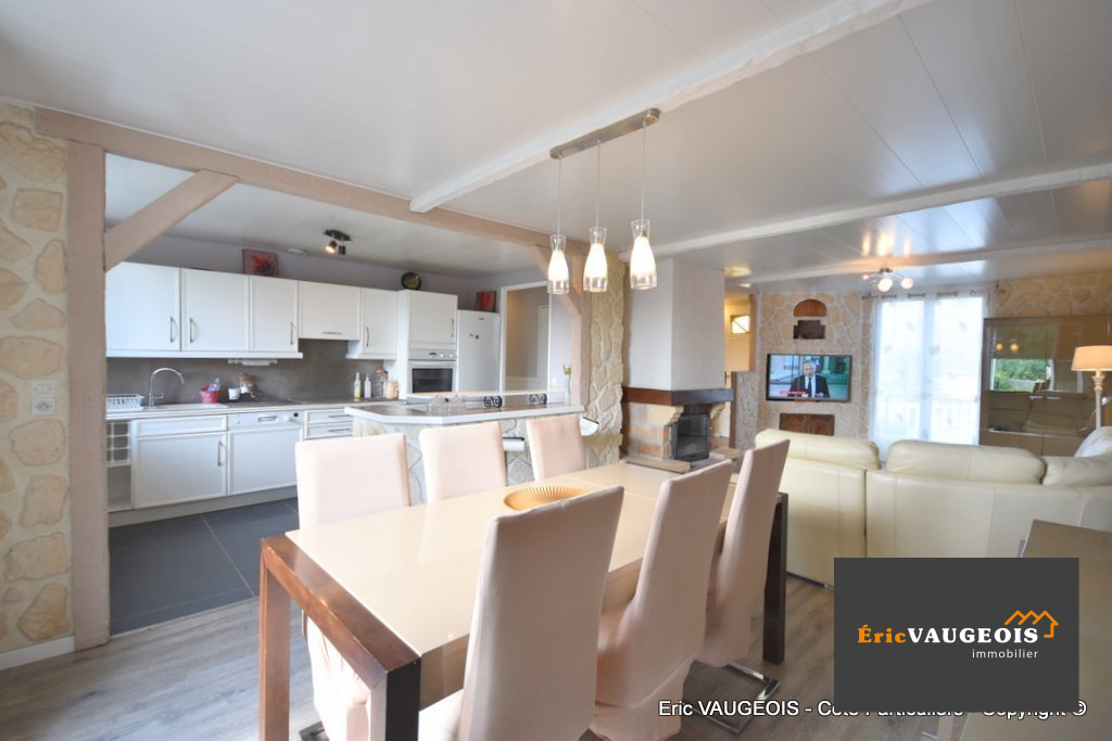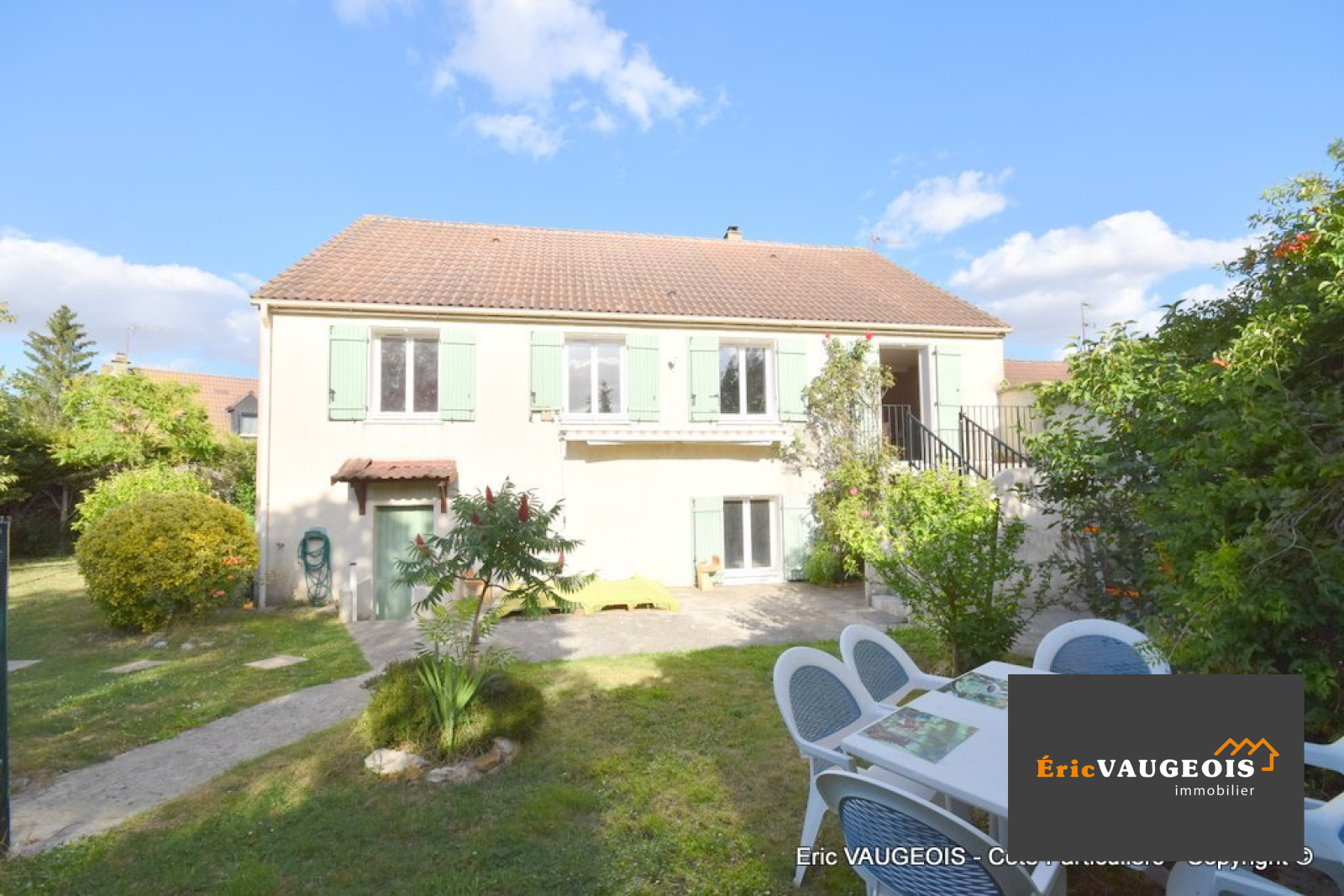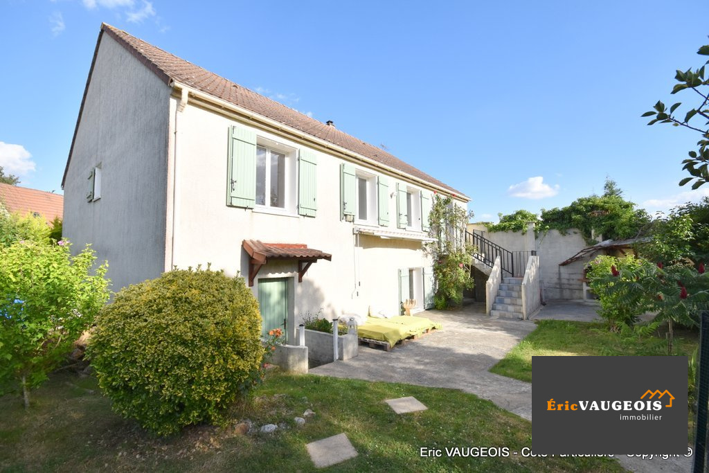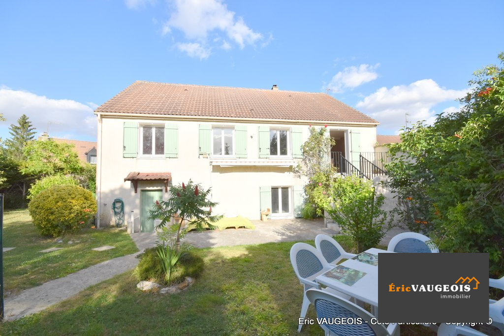 L'agence Eric VAUGEOIS immobilier à Coulommiers au milieu de la rue piètonne. Eric VAUGEOIS vous propose dans le village de Chenoise (77160) cette maison T6 de 1987 de 116 m² environ de plain-pied surelevé sur son garage total. Elle se compose : Entrée avec placard - Grand séjour lumineux double exposition nord/sud avec cheminée à foyer fermé - Cuisine aménagée et équipée ouverte - Dégagement central - 4 Chambres - WC séparé - Salle de bains. En Rez de jardin un garage total de 100 m² environ. Terrain de plus de 500 m² plat, clos, au calme et sans aucun vis-à -vis. Tout-à -l'égout conforme. Fibre internet très haut débit. Fenêtres double vitrage. Ballon d'eau chaude électrique. Chauffage radiateurs électrique. DPE en E pour une consommation annuel indicative de 1404 Euros. Taxe foncière de 1020 E/an. A visiter sans tarder !