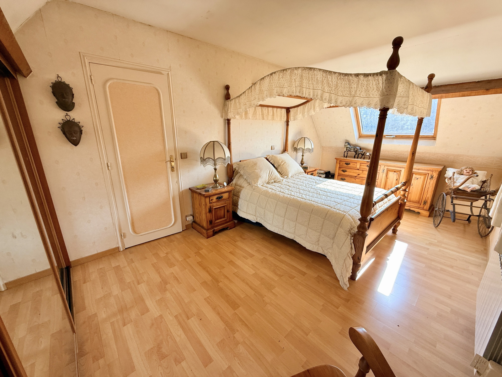 A l'étage le palier dessert 4 chambres, un wc et une salle de bains.
