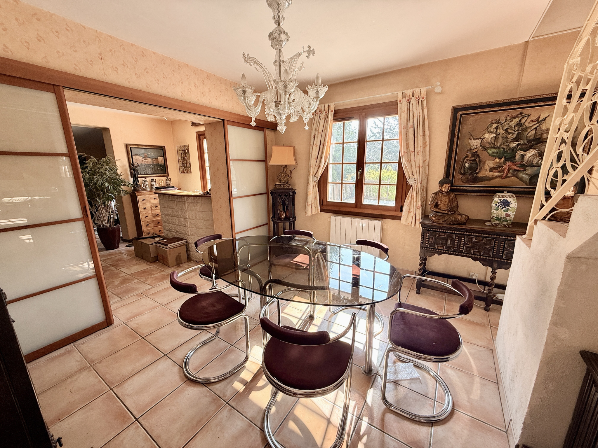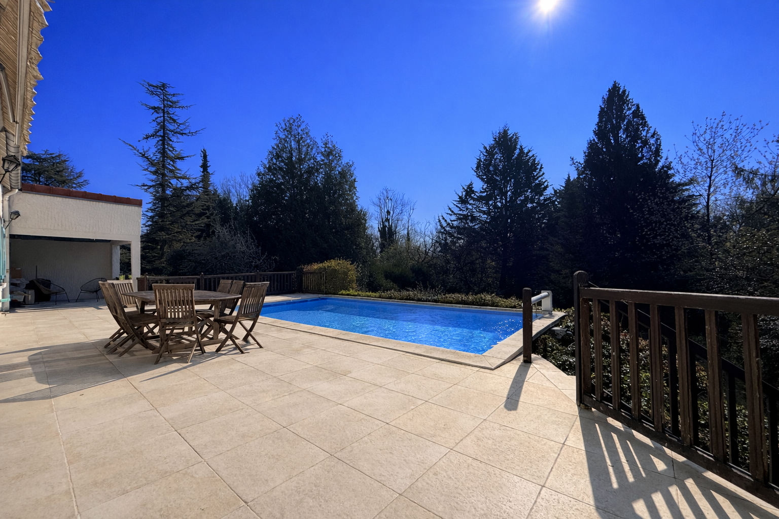 Côté extérieur ; une immense terrasse exposée plein sud et sa piscine chauffée suplombe le jardin arboré et clos sans aucun vis à vis. Vous pourrez stationner plusieurs véhicules dans la cour à l'avant de la maison.