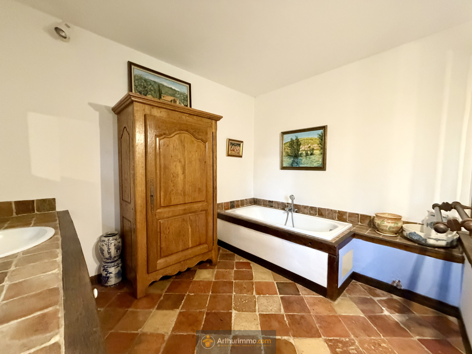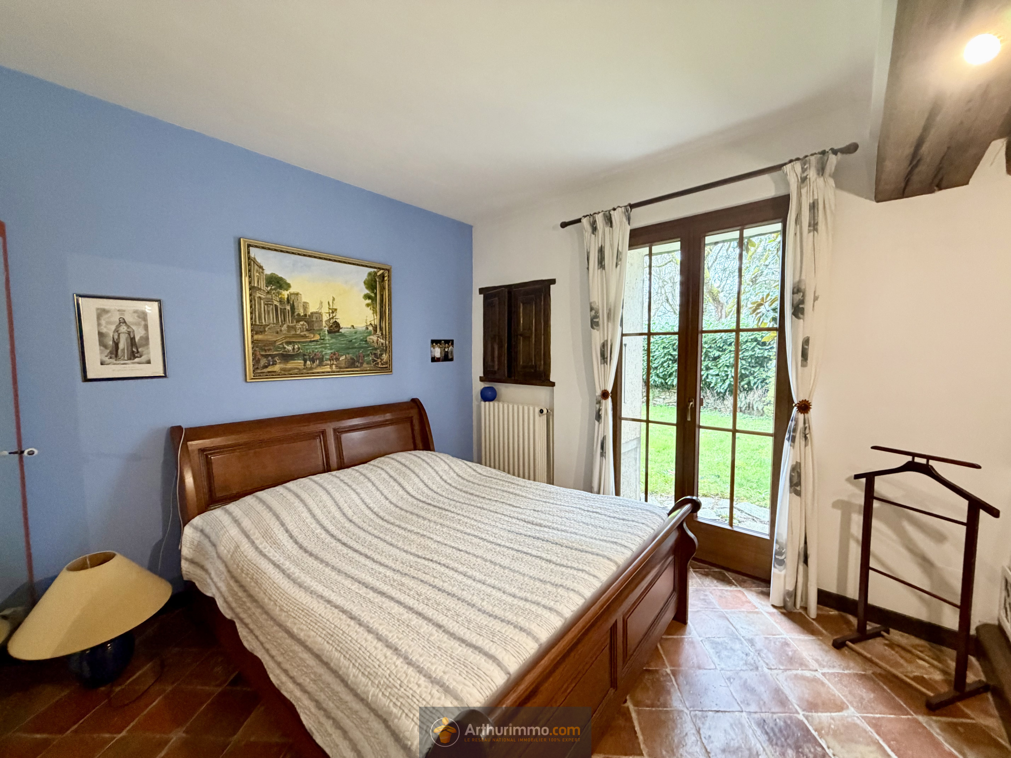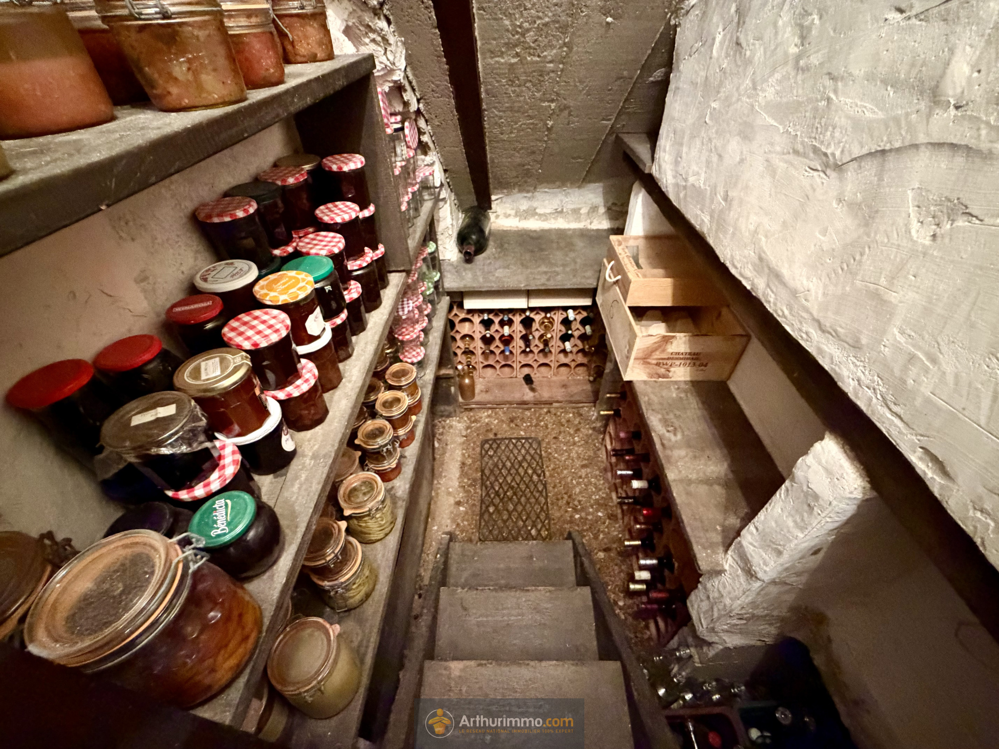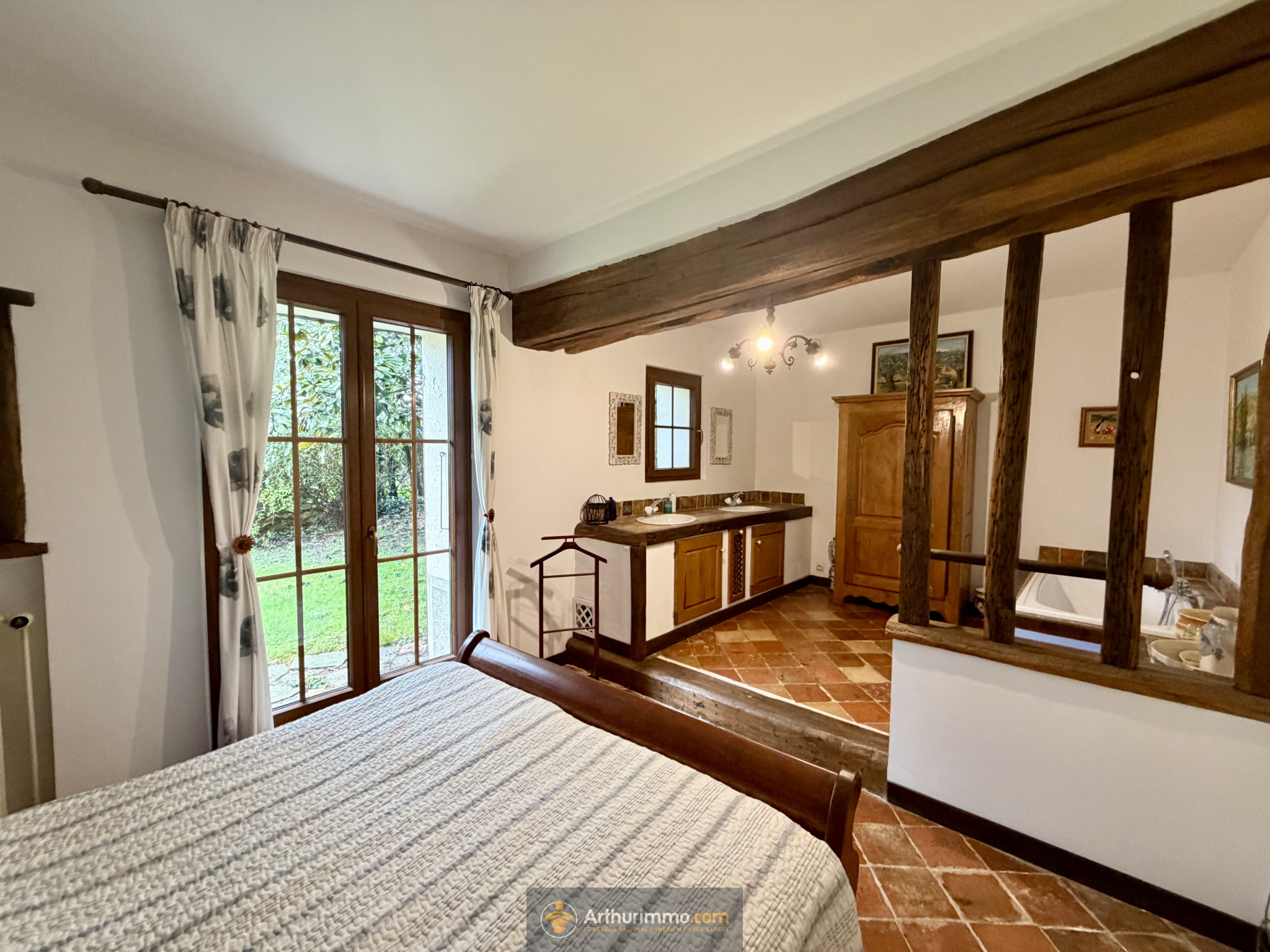 Au rez-de-chaussée : entrée avec placard – séjour lumineux de plus de 80 m² environ avec tomettes au sol, 2 cheminées, poutres apparentes et cuisine ouverte aménagée/équipée – suite parentale de 20 m² environ avec sa salle de bains – salle d'eau et wc - Accès au garage et à une cave.