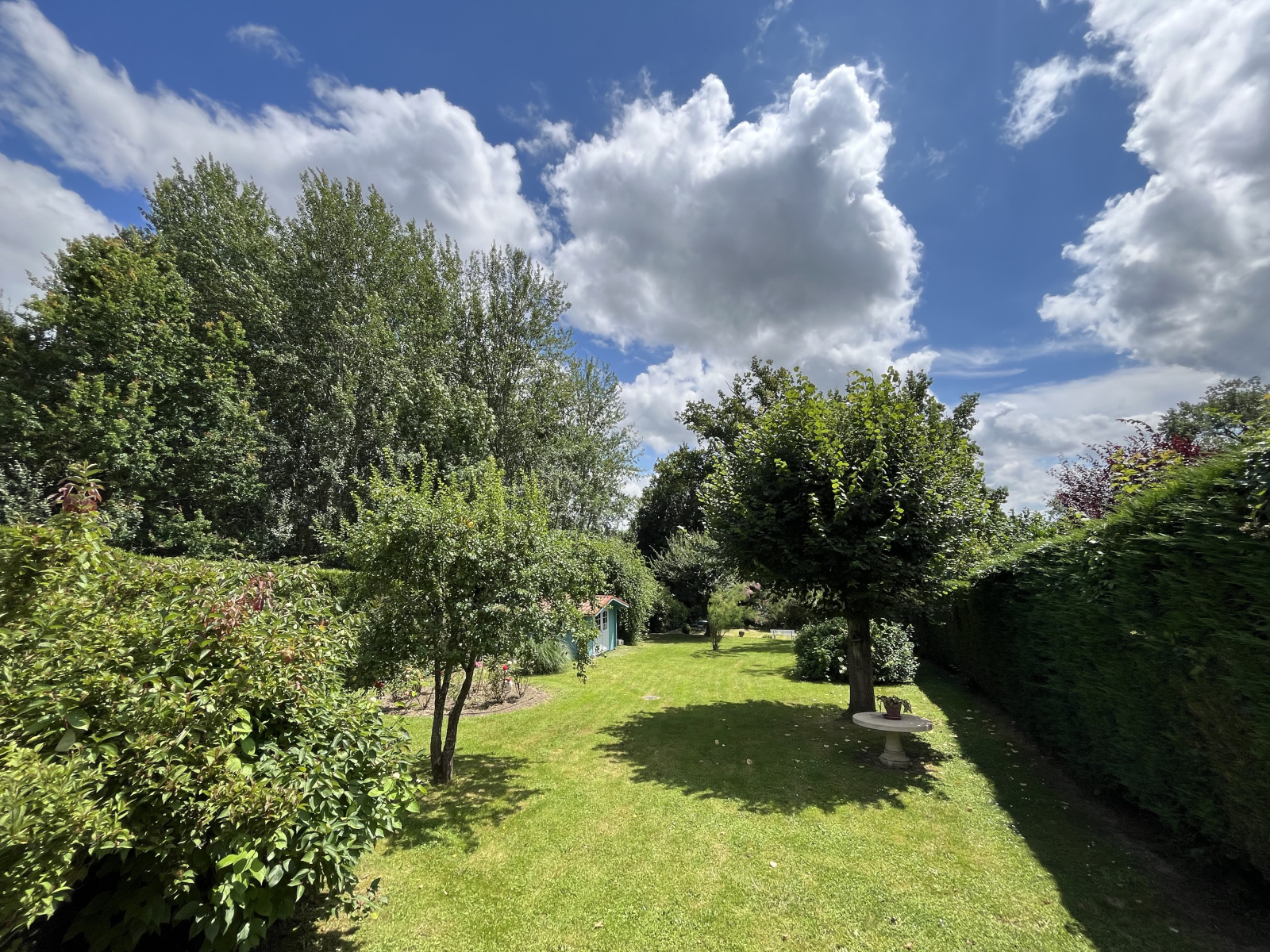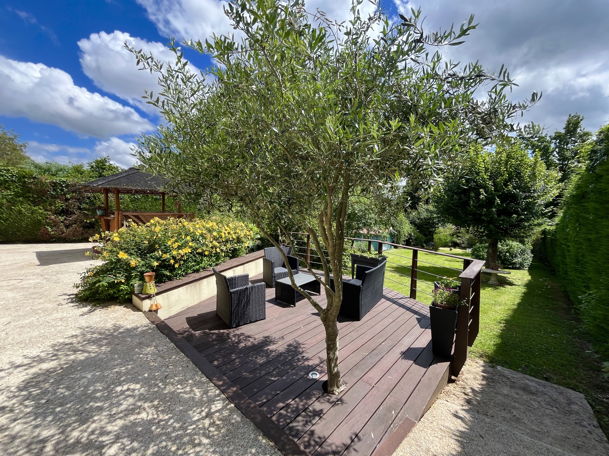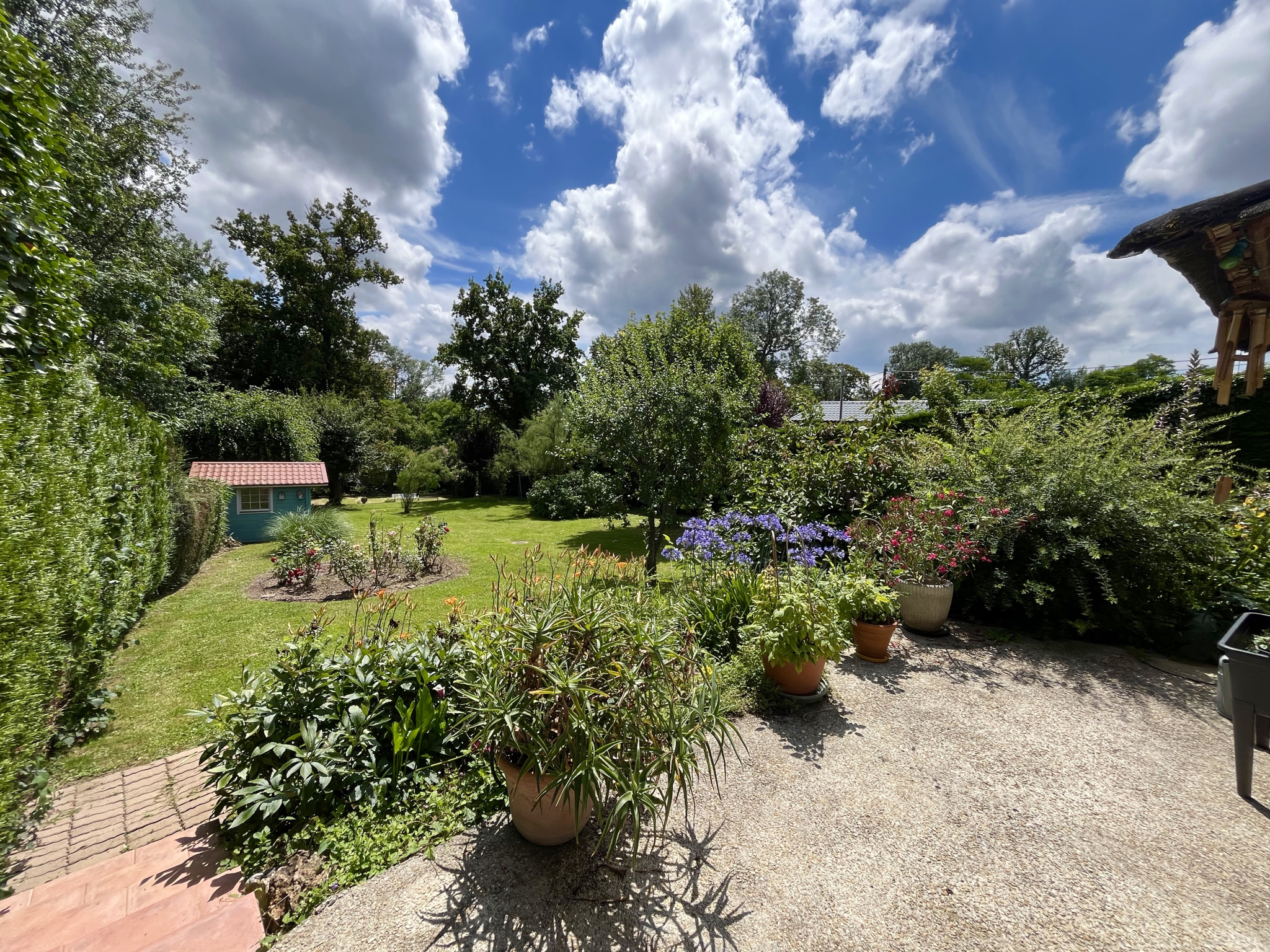 Implanté sur une parcelle de 1600 mètres carrés arboré et clos, le jardin sans vis à vis dispose d'un garage double, d'une grande terrasse et d'un cabanon de jardin. Le tout en parfait état et à l'abri des regards.