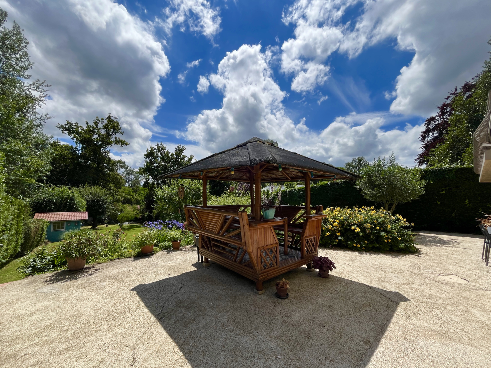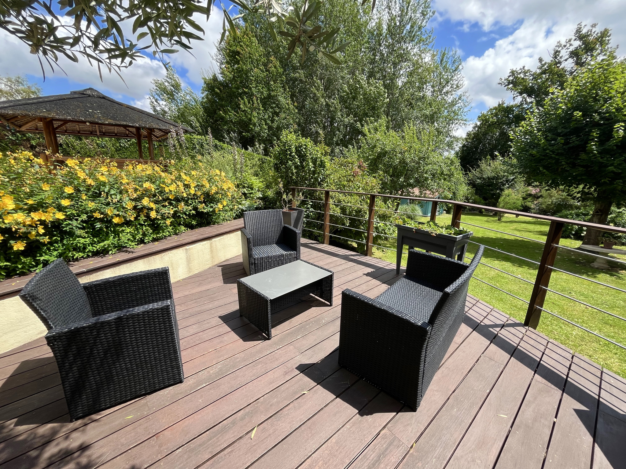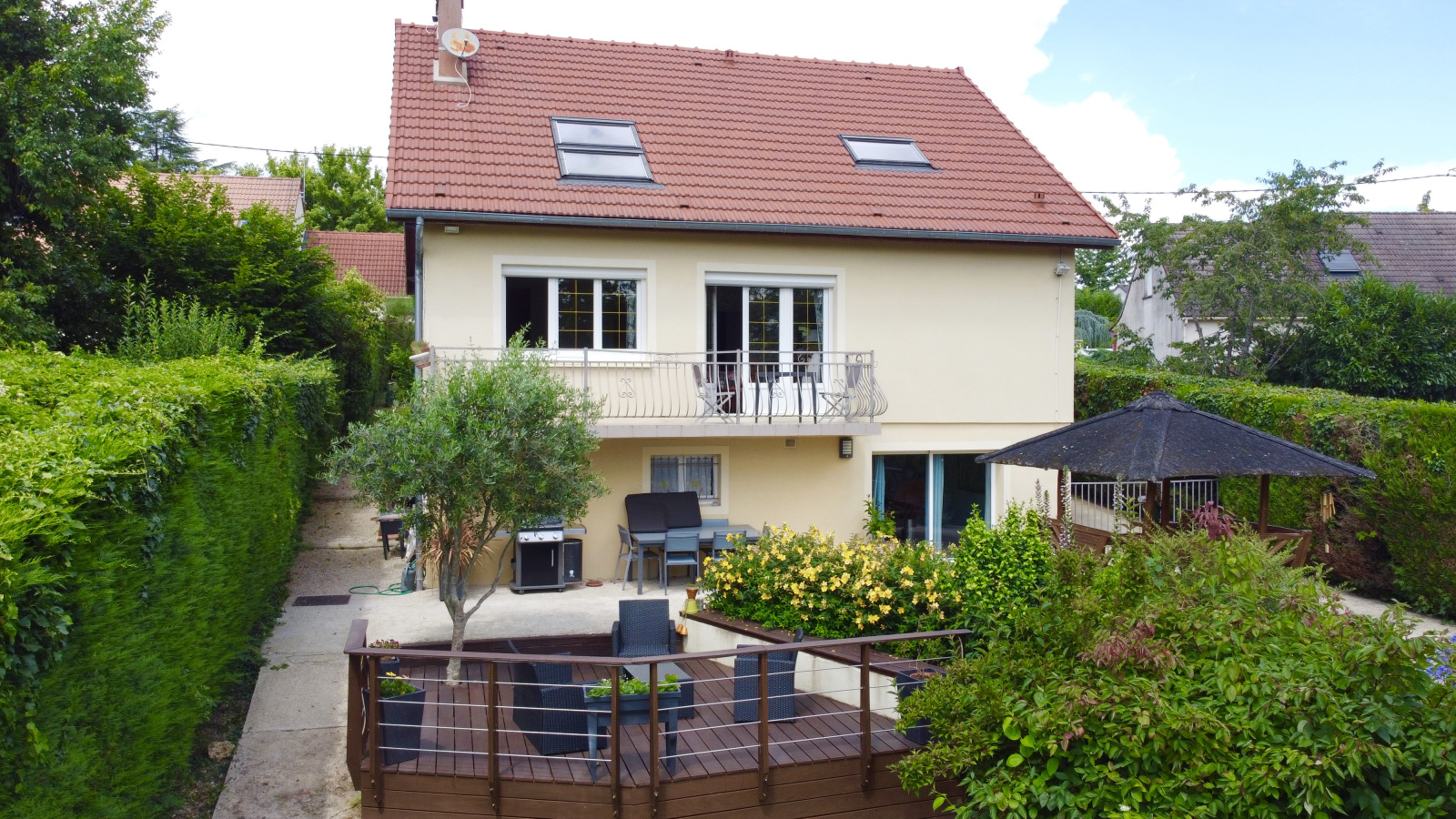 Implanté sur une parcelle de 1600 mètres carrés arboré et clos, le jardin sans vis à vis dispose d'un garage double, d'une grande terrasse et d'un cabanon de jardin. Le tout en parfait état et à l'abri des regards.