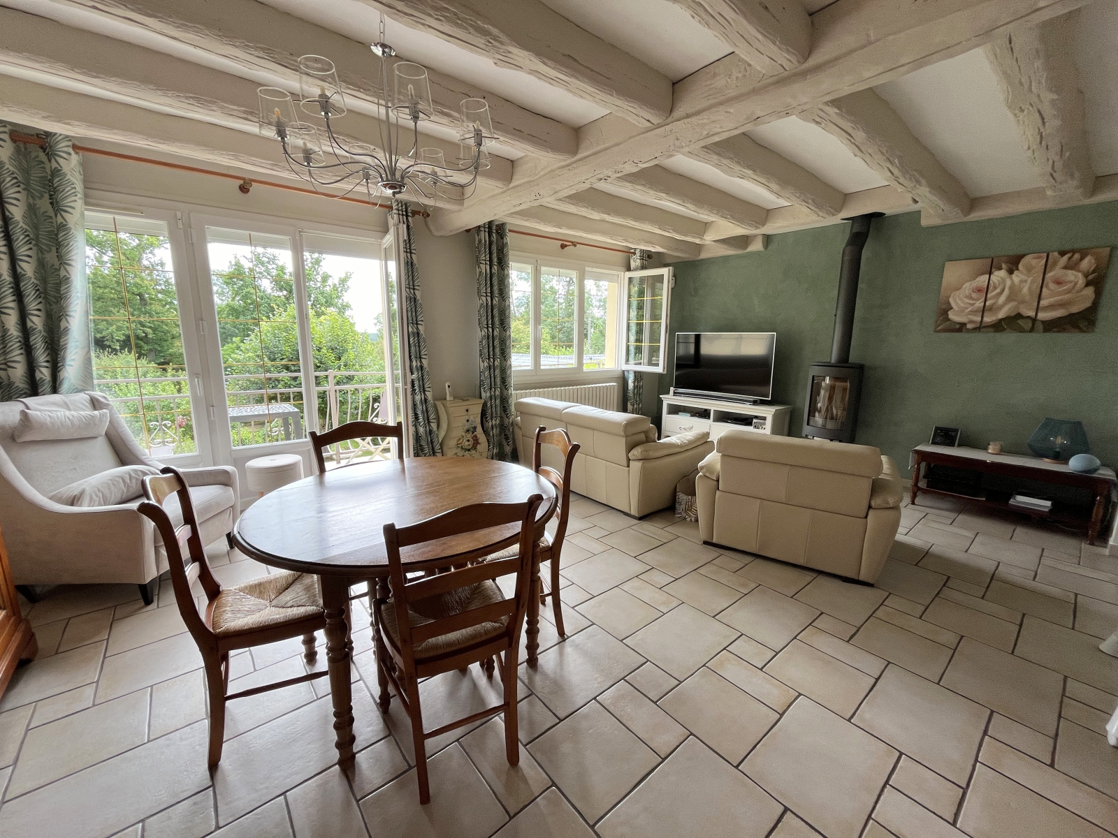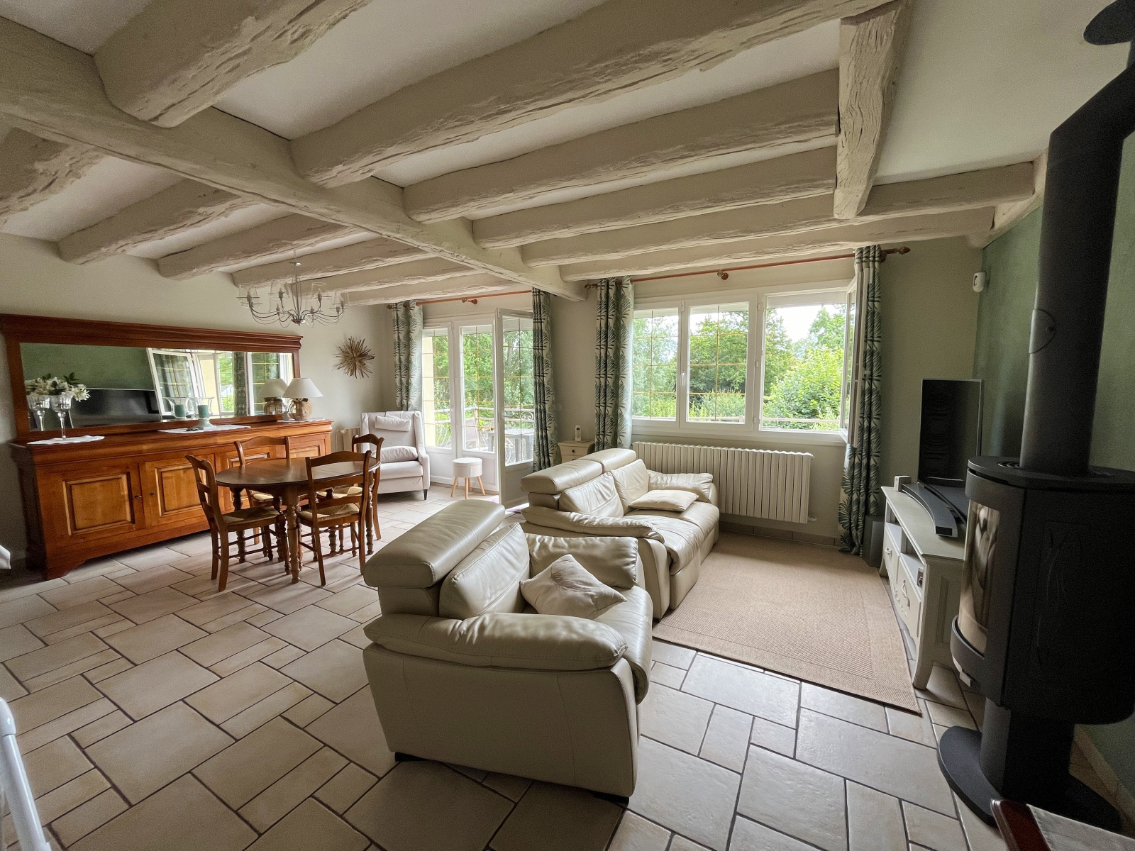 Ses +++ : Portail motorisé, double vitrage pvc, tout à l'égout, chauffage central + poêle à bois.