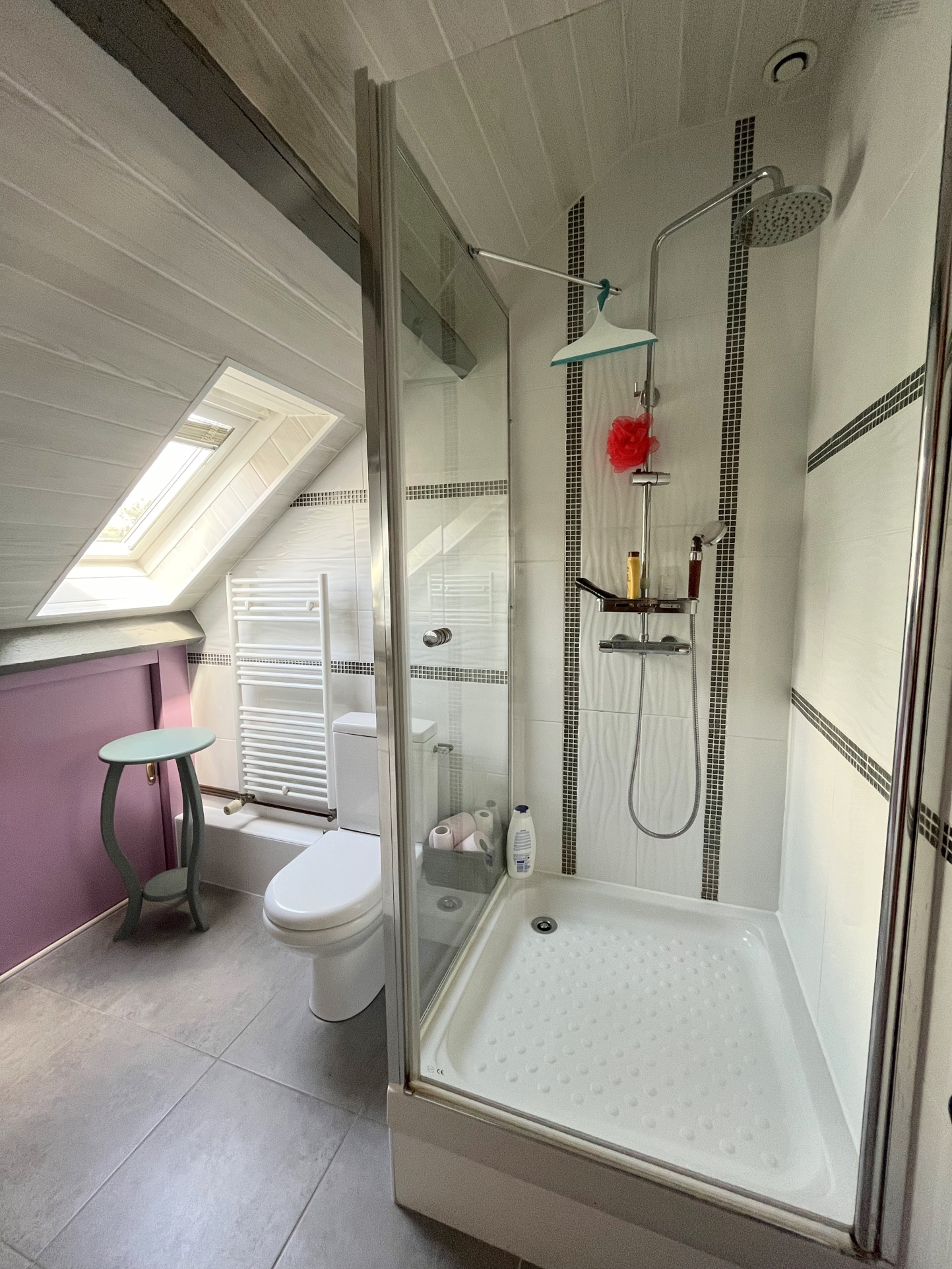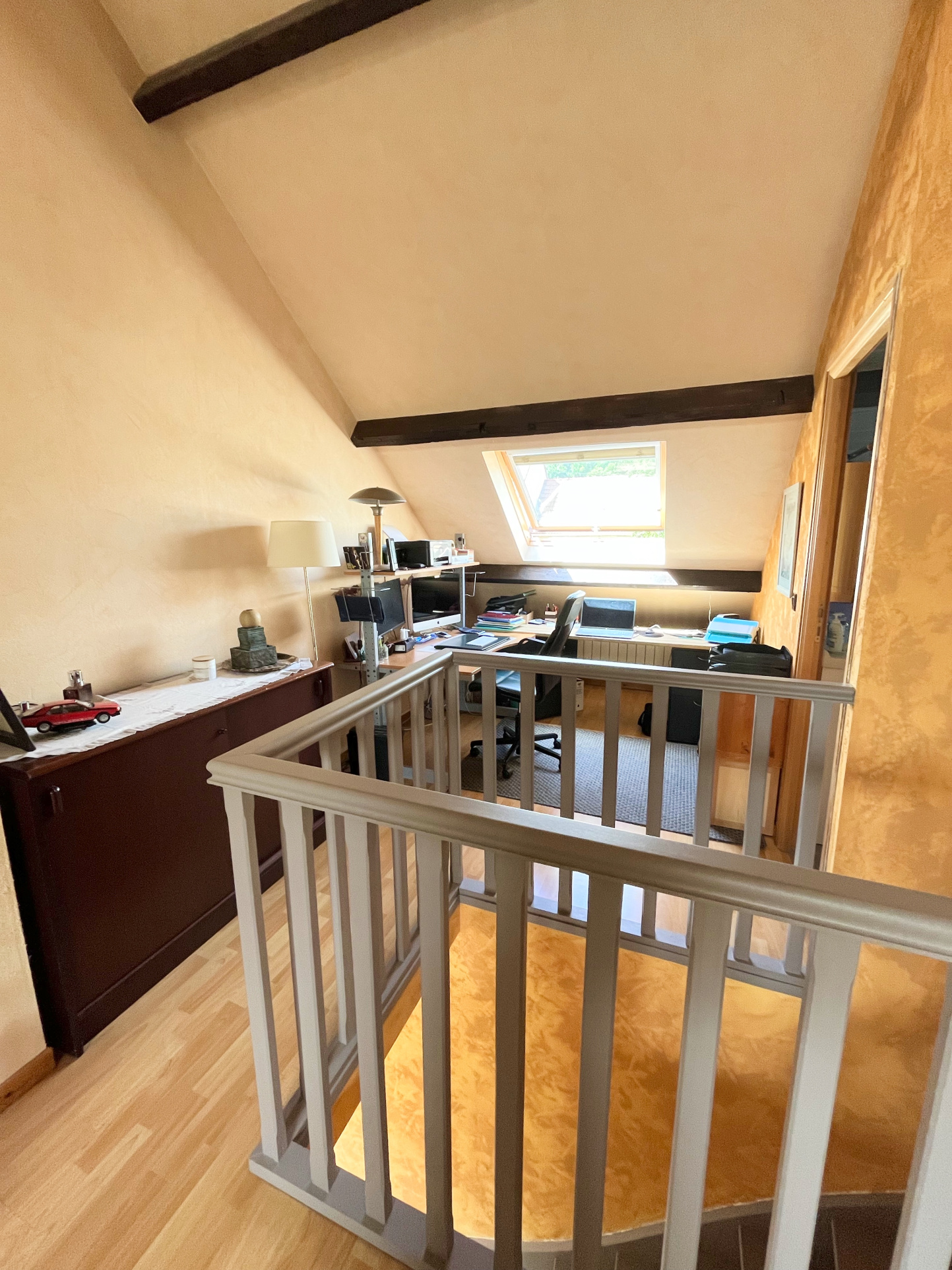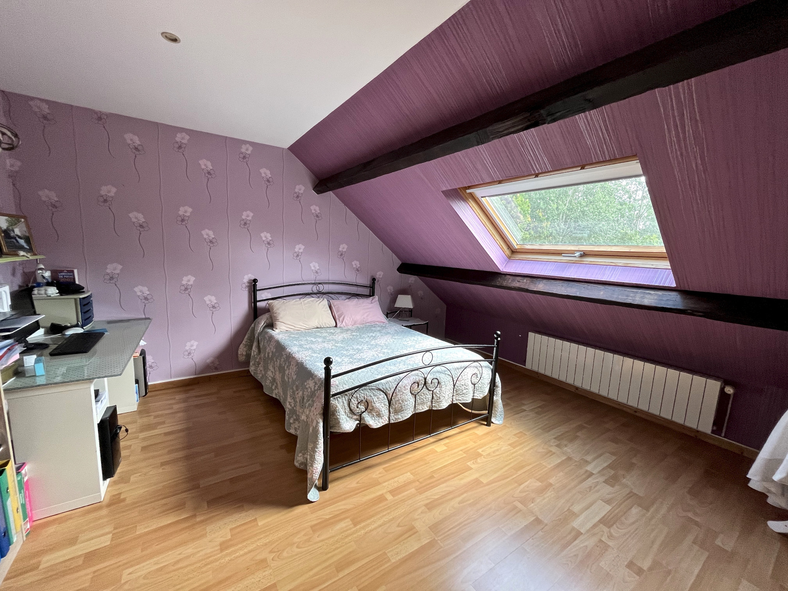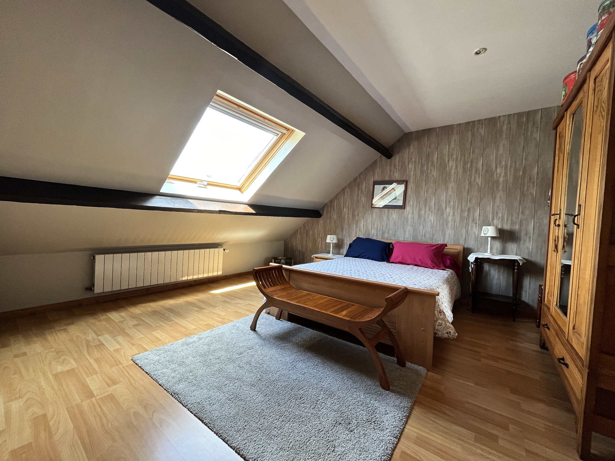 A l'étage, une grande pièce palière faisant office de salle de jeux et de bureau donne accès à deux grandes chambres et une salle d'eau avec wc.