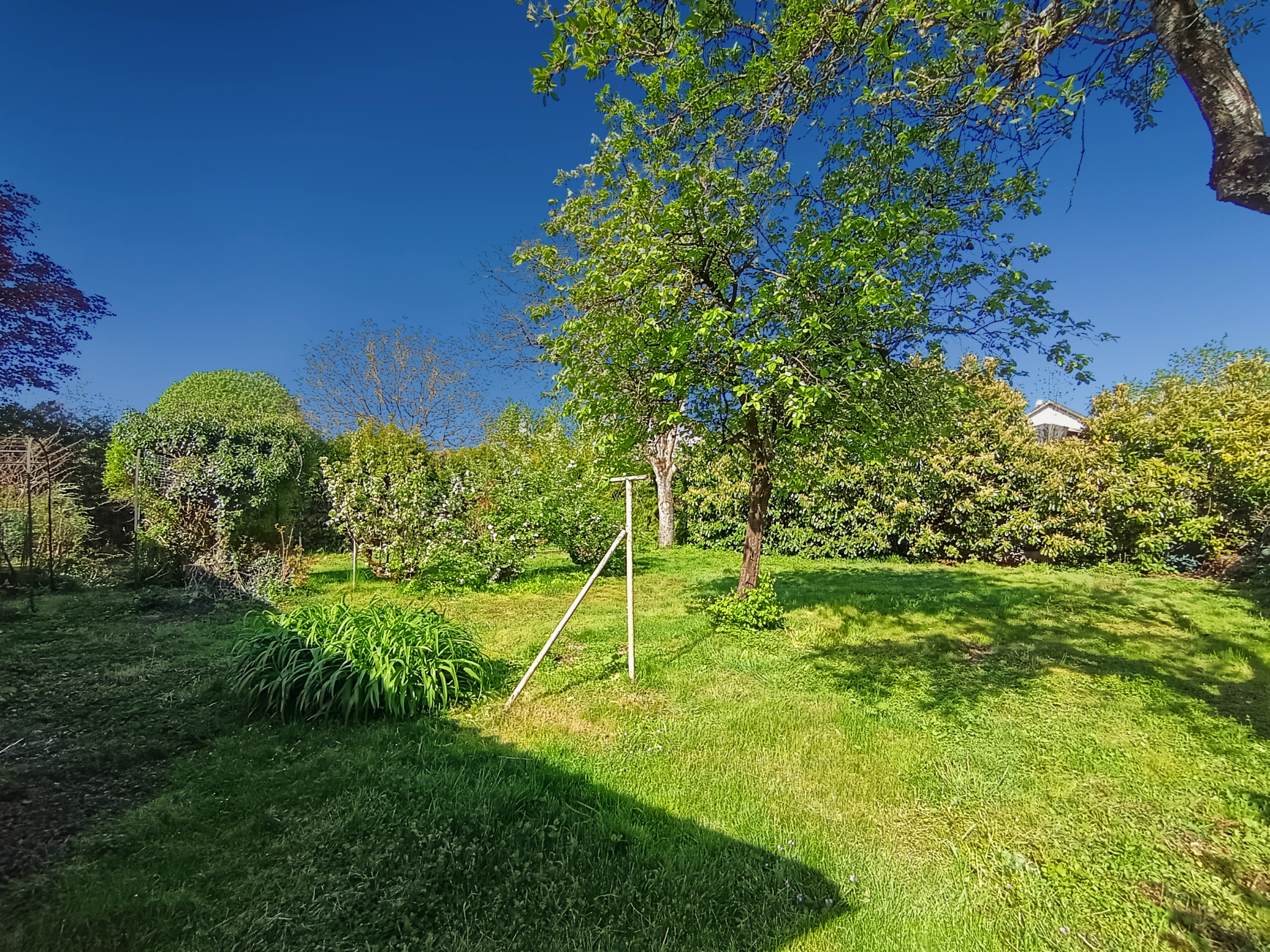 Magnifique terrain arboré de 1200 m² qui entoure la maison. Pergola en pignon pour les repas de famille estivaux.