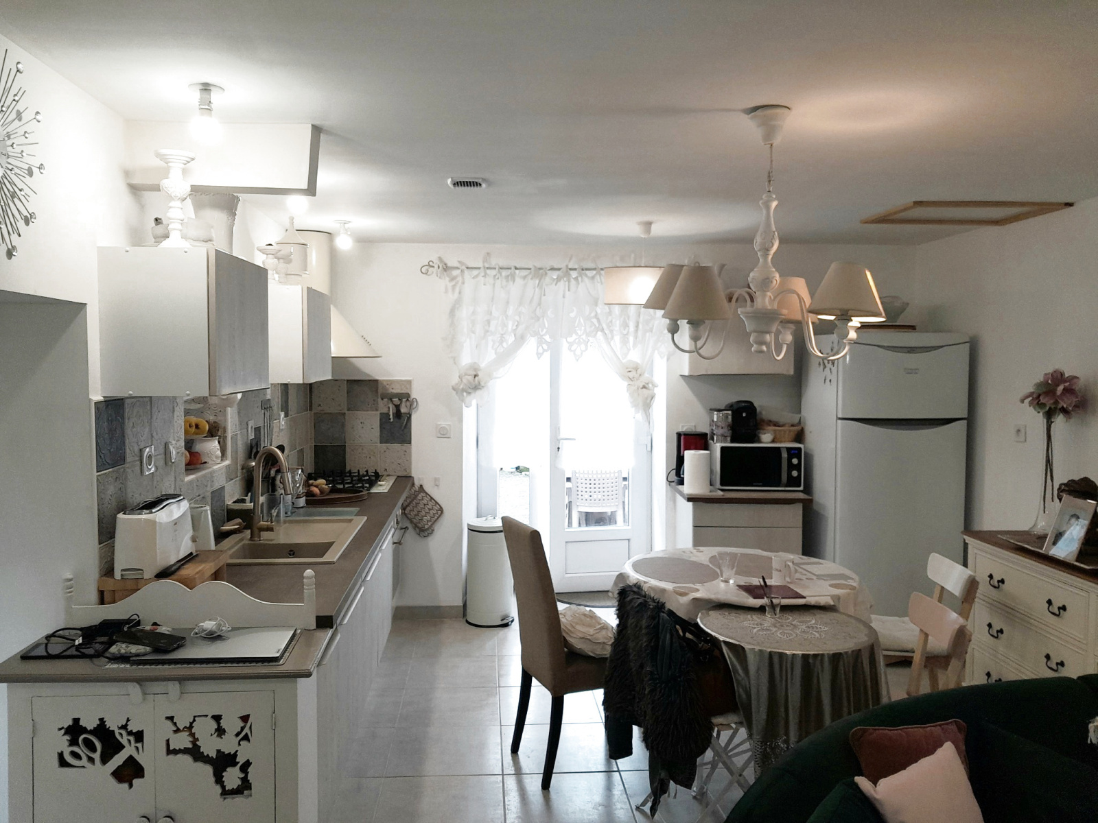 Au centre de LANVOLLON, ENSEMBLE IMMOBILIER (rénovation récente), comprenant au Rdc, une surface commerciale et annexes d'environ 90 m². Un studio (35 m²), avec une cuisine entièrement équipée et bec séparé, salle de bains, wc. Un hall de distribution (buanderie) avec point eau et évacuation. A l'étage, un appartement d'environ 45 m² composé d'une cuisine équipée, ouverte sur le séjour, deux ou trois chambres, une salle d'eau, un wc. Entrées indépendantes. Chauffage électrique et poêle à granulés. Jardin clos, plein sud de 322 m², cour. Une dépendance (45 m²). Parking à proximité. Assainissement collectif.