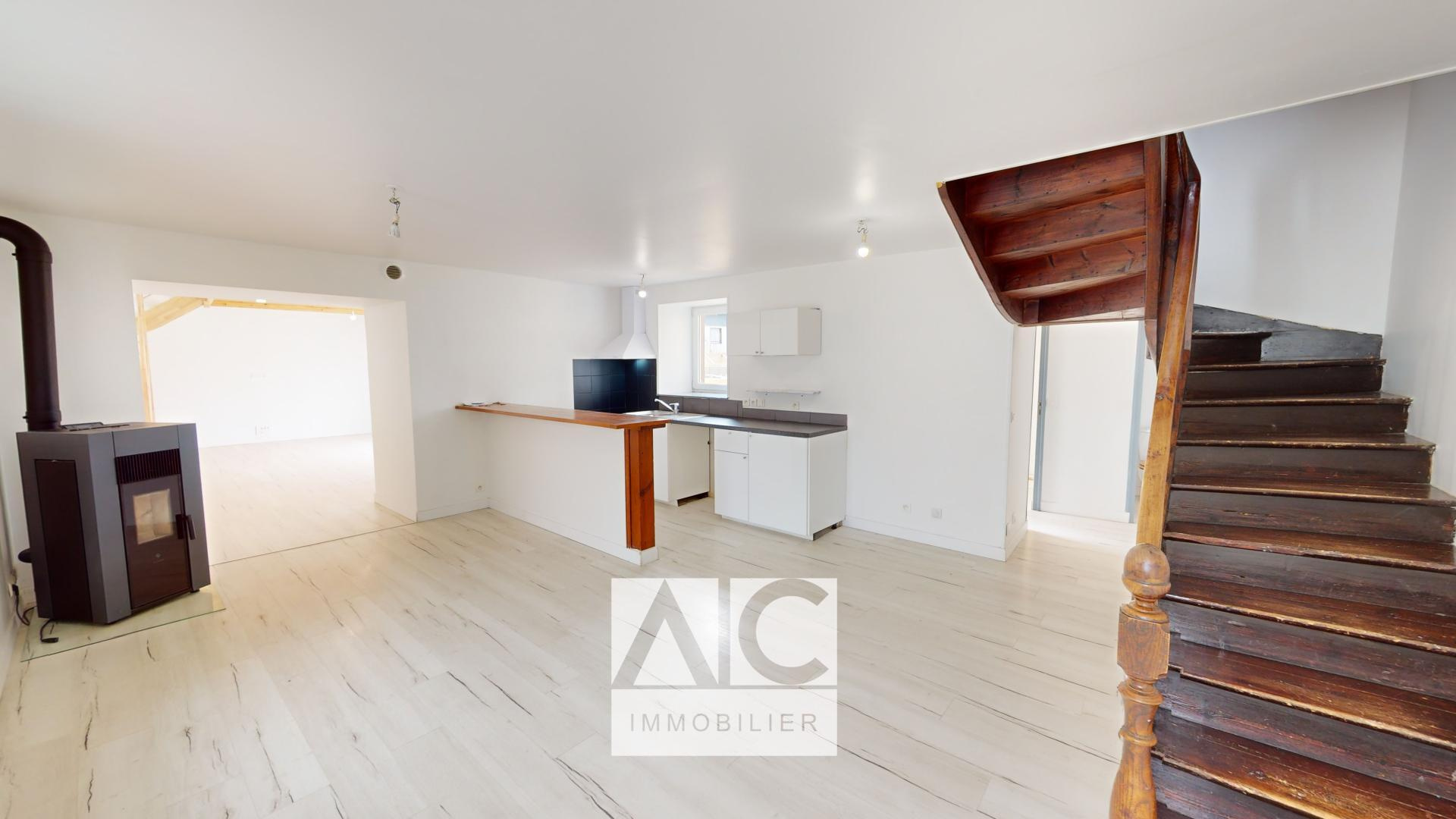 REZ-DE-CHAUSSÉE : Entrée / Cuisine / Salon-séjour avec poêle à granulés / WC indépendant / Buanderie avec accès extérieur.