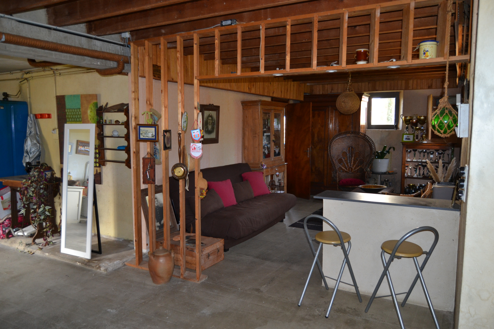 En rez de jardin, beau volume garage chaufferie cellier, une chambre et un wc indépendant. Idéal atelier d'artiste !