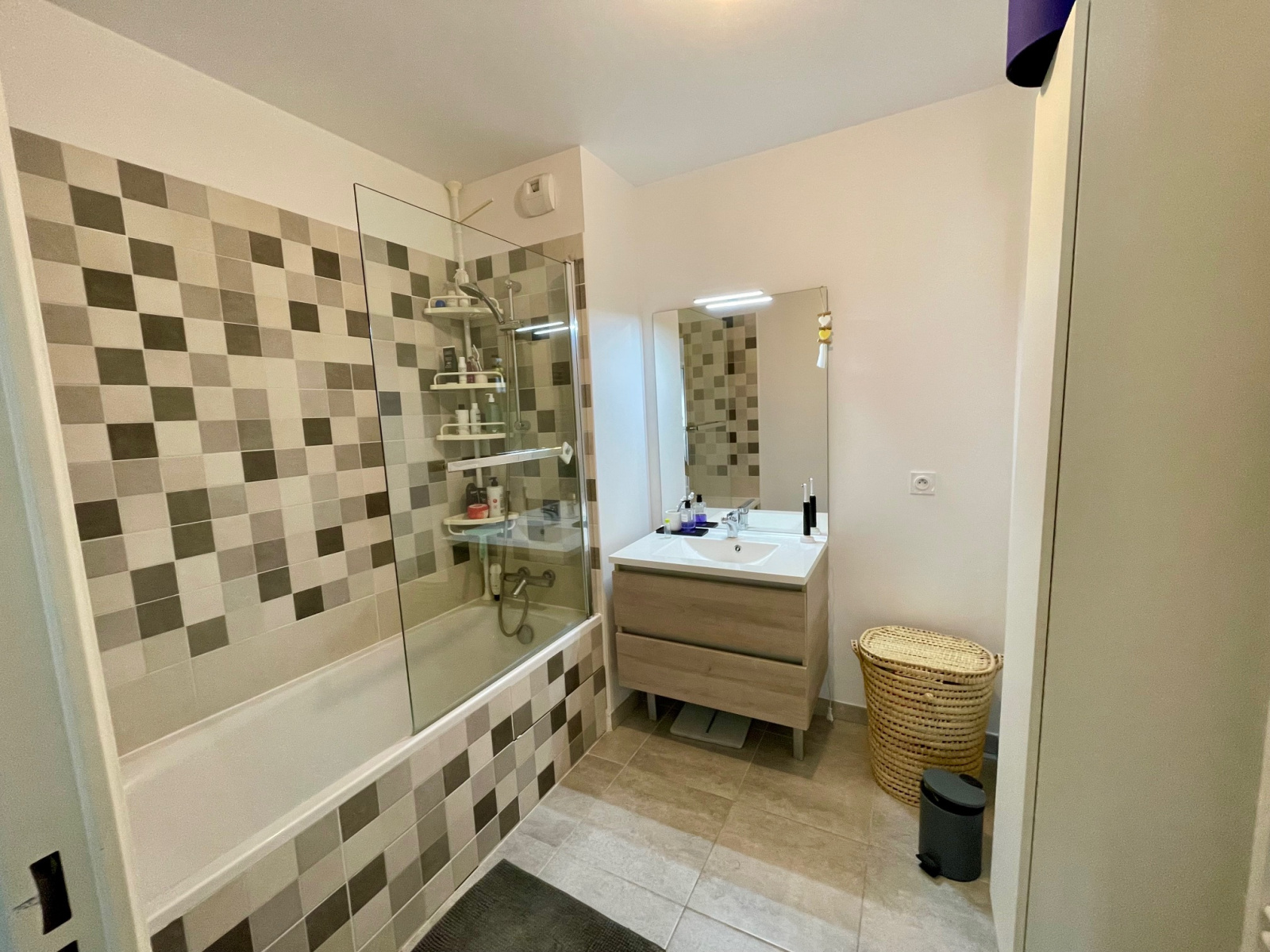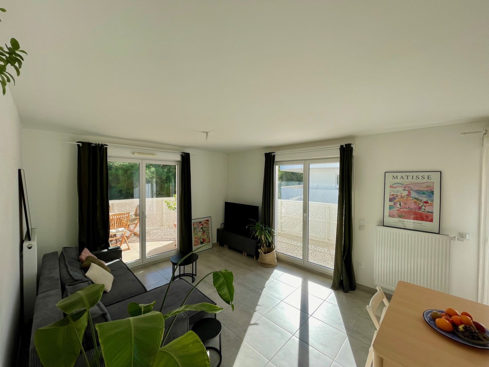 L’appartement se compose d’une entrée avec placard, une salle de bain équipée, deux chambres avec dressing, un toilette séparé (PMR), une belle pièce de vie avec cuisine aménagée de 26m² et équipée (hotte- plaque-four) donnant sur une superbe terrasse de 32m² exposée plein Sud/Sud-Est accessible depuis toutes les pièces…! (vue féerique/panoramique sur Marseille, Allauch, Chateau-Gombert). Il est équipé d’une chaudière à gaz pour l’eau chaude et le chauffage dernière génération et d’un visiophone. Les charges mensuelles s’élèvent à 140 €/mois et la taxe foncière à 1 600 €/an. Copropriété de 119 lots. Classe énergie B. Mandat de vente numéro: 96 944 Expertimo.