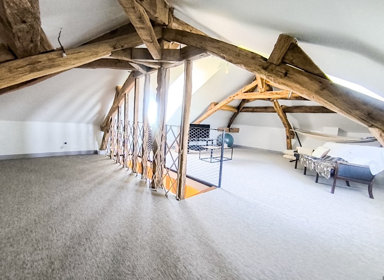 Une mezzanine avec balcon. Vous y trouverez également un palier desservant deux pièces à usage de chambres, une salle de douche avec WC, ainsi qu’une suite parentale composée d’une chambre, d’une salle de bain et d’un espace idéal pour un dressing, avec accès à un balcon.