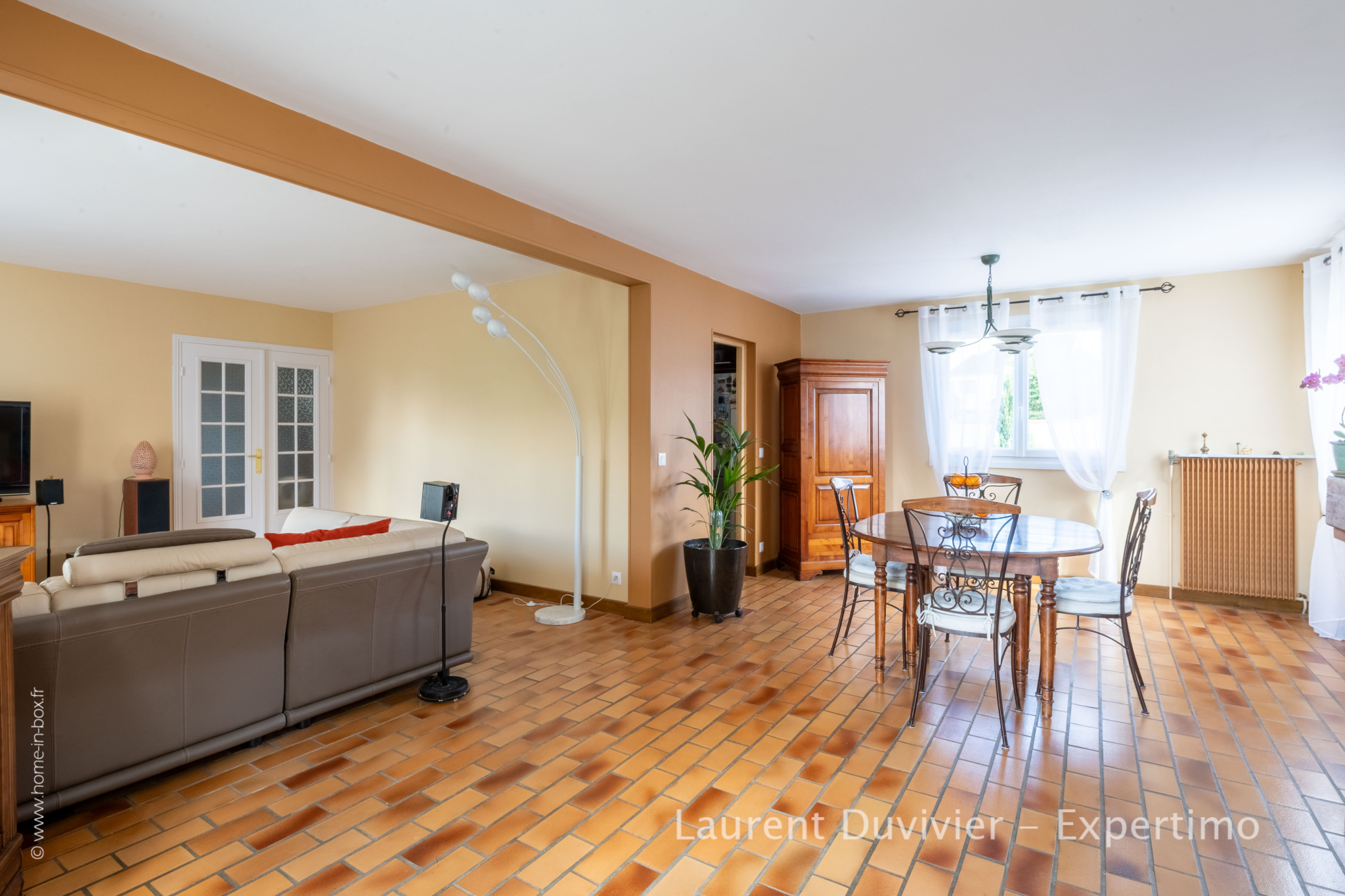 Bien que dans un état absolument irréprochable, le séjour, l’entrée et 2 des 3 chambres du RDC arborent une décoration un peu ancienne que vous pourriez moderniser. Il s'agirait juste de prévoir un coup de peinture et la pose d’un parquet ou le changement du carrelage au sol (voir photos d’aménagements générés par IA).