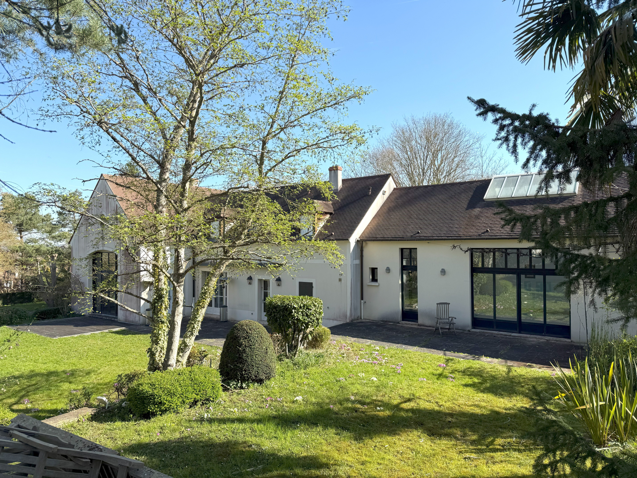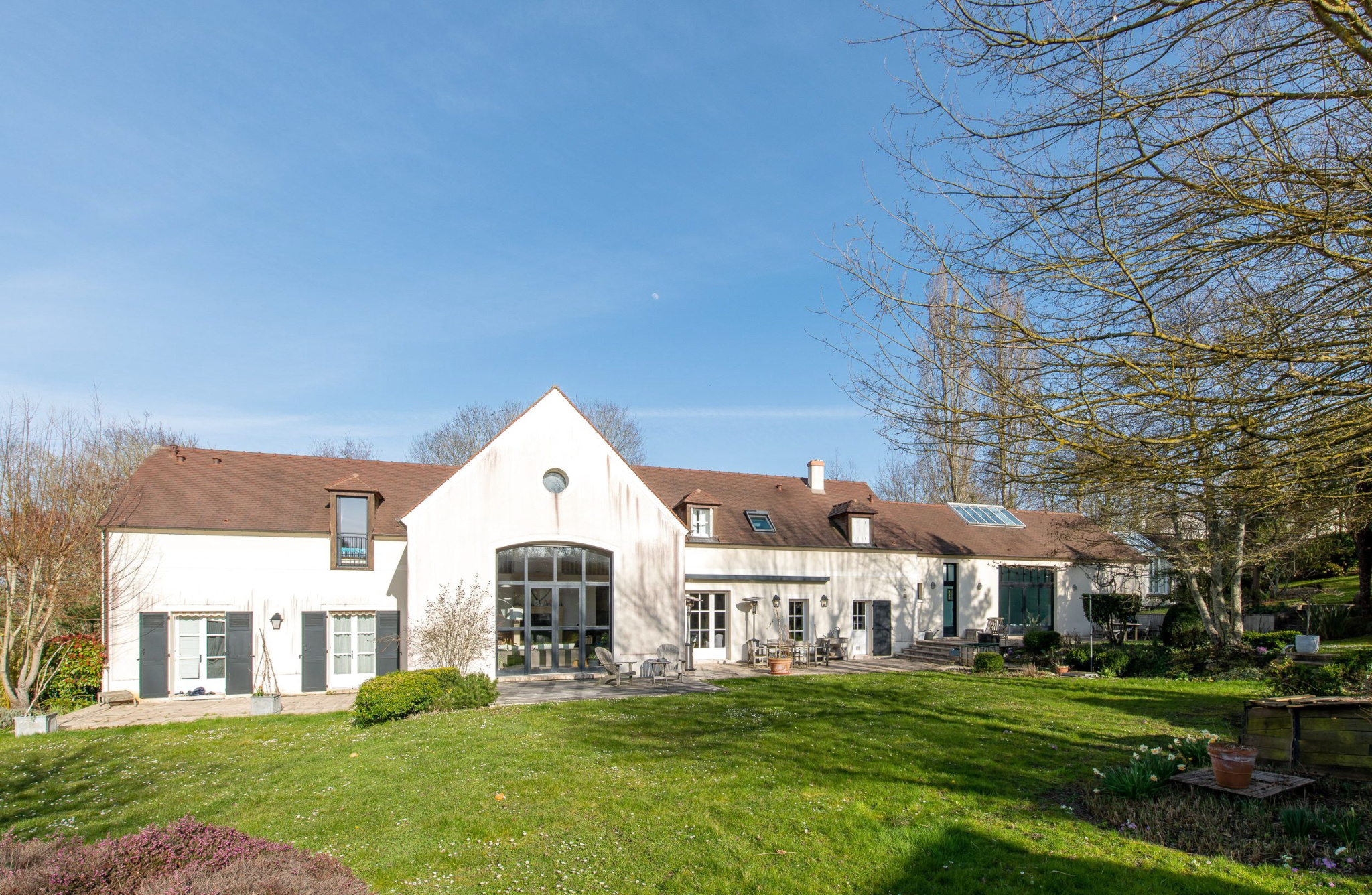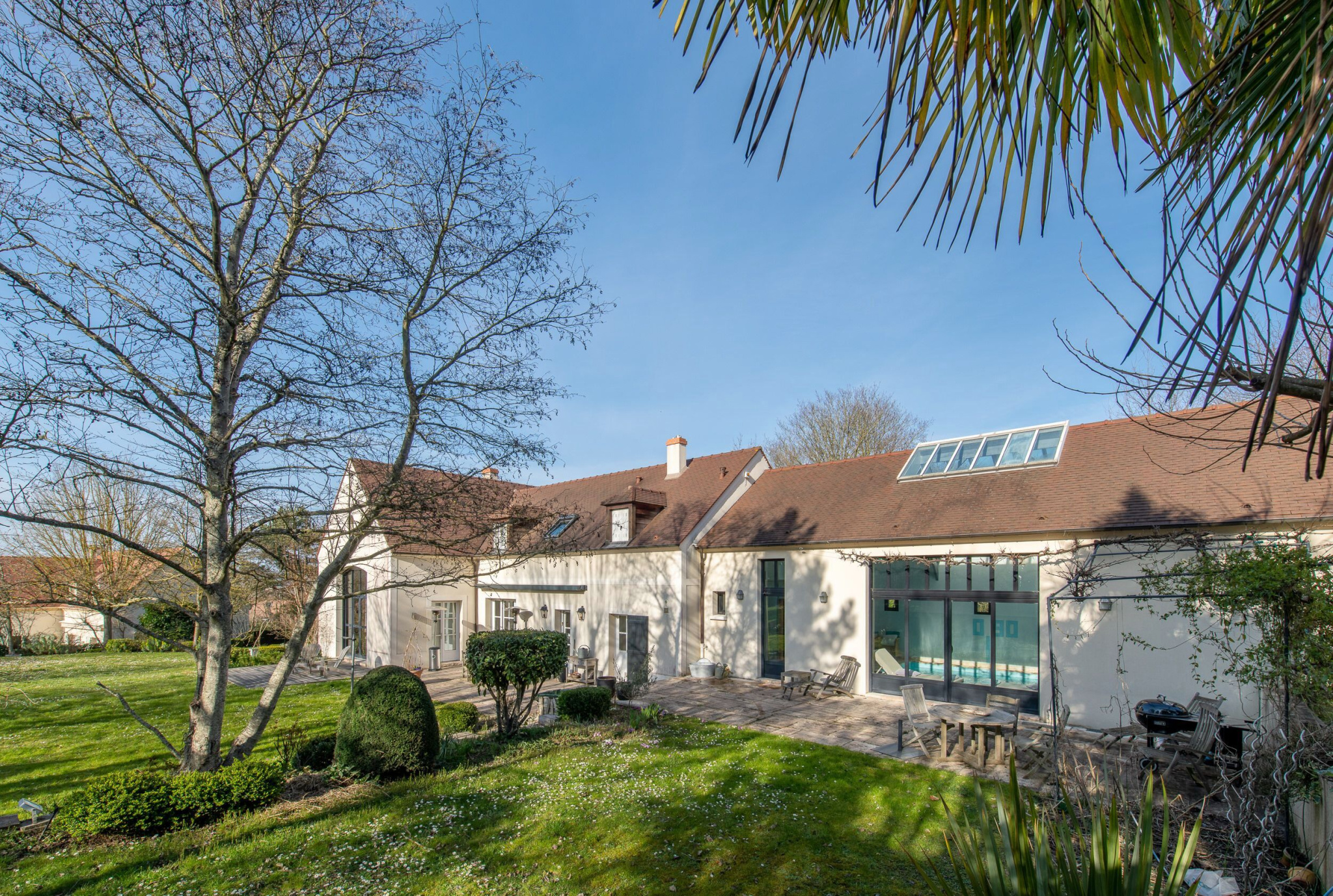 Exclusivité, à 30 km de Paris, Centre de Morainvilliers, Belle longère dotée d'un charme fou, construite en 1999 avec des matériaux de qualité. Sa surface de 305m² avec espace piscine intérieur de 75m² se pose sur un terrain paysager de 2732m². Une entrée avec vestiaire dessert une belle pièce de réception lumineuse de 60m² d'une hauteur cathédrale de 7m avec grande baie plongeant sur le jardin. Une vitre d'atelier sépare la cuisine équipée d'un piano de cuisson et d'un four à vapeur. A proximité immédiate, buanderie et grand cellier. Le rez-de-chaussée se poursuit par un spacieux bureau, une chambre et sa salle de bains. Un joli passage découvre un espace aquatique avec de grandes baies à galandage s'ouvrant sur une belle terrasse. La piscine(7x4) est complétée de sanitaires (WC, douche et lave-mains), d'un volet roulant, d'une buse de massage. Pour finir, un atelier avec son toit en verrière complète ce niveau. A l'étage, un beau palier en mezzanine avec charpente apparente, sépare l'espace parents des 3 chambres enfants et de leurs salles d'eau. La suite parentale se compose d'une chambre bénéficiant d'une double exposition, dressing et salle de bains. A l'extérieur : une charretterie avec bûcher permet de stationner deux voitures, une salle de sport et un garage pour équipement jardin. Chauffage au sol, Chaudière gaz De Dietrich, arrosage automatique, domotique, fibre, alarme, portail automatique.