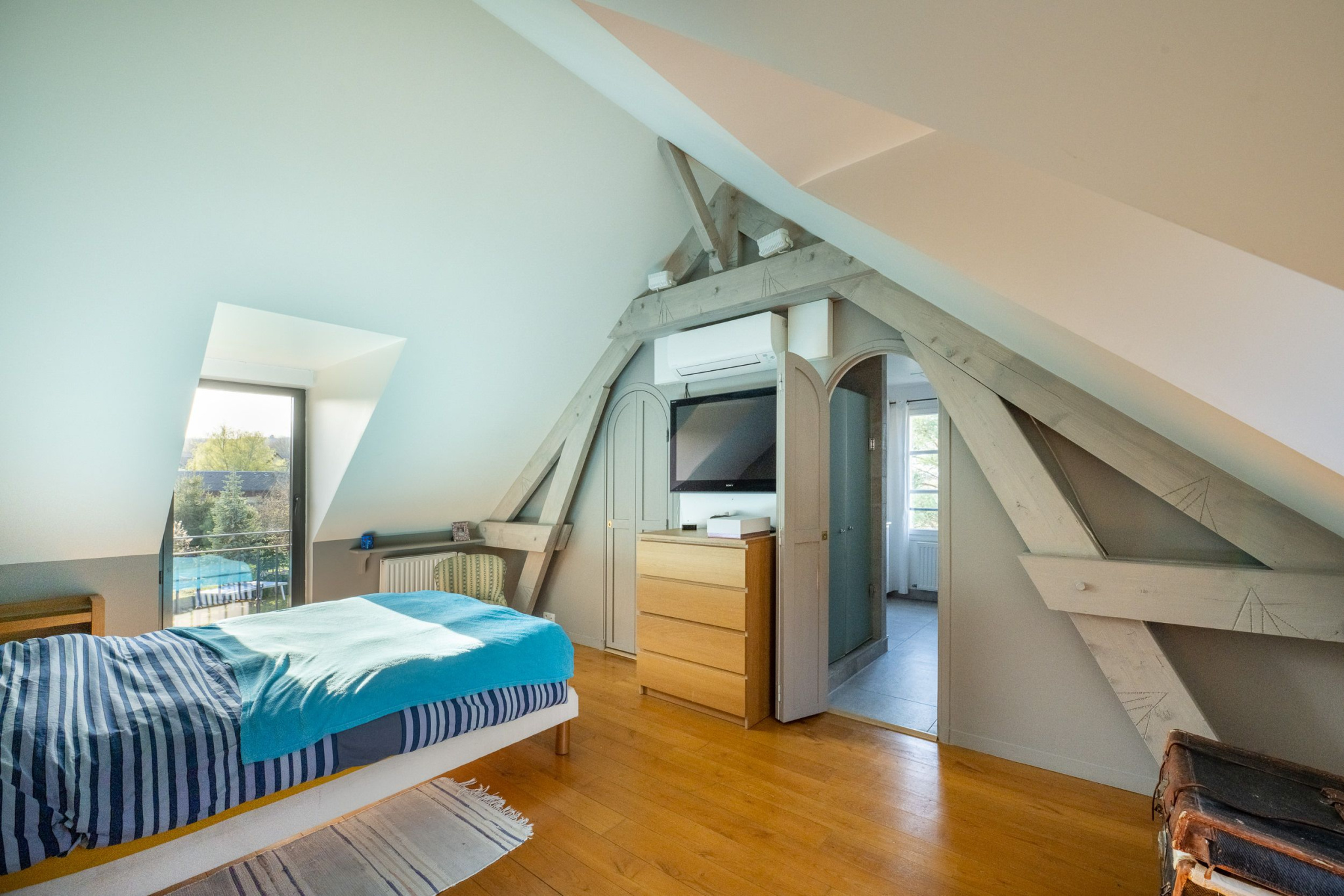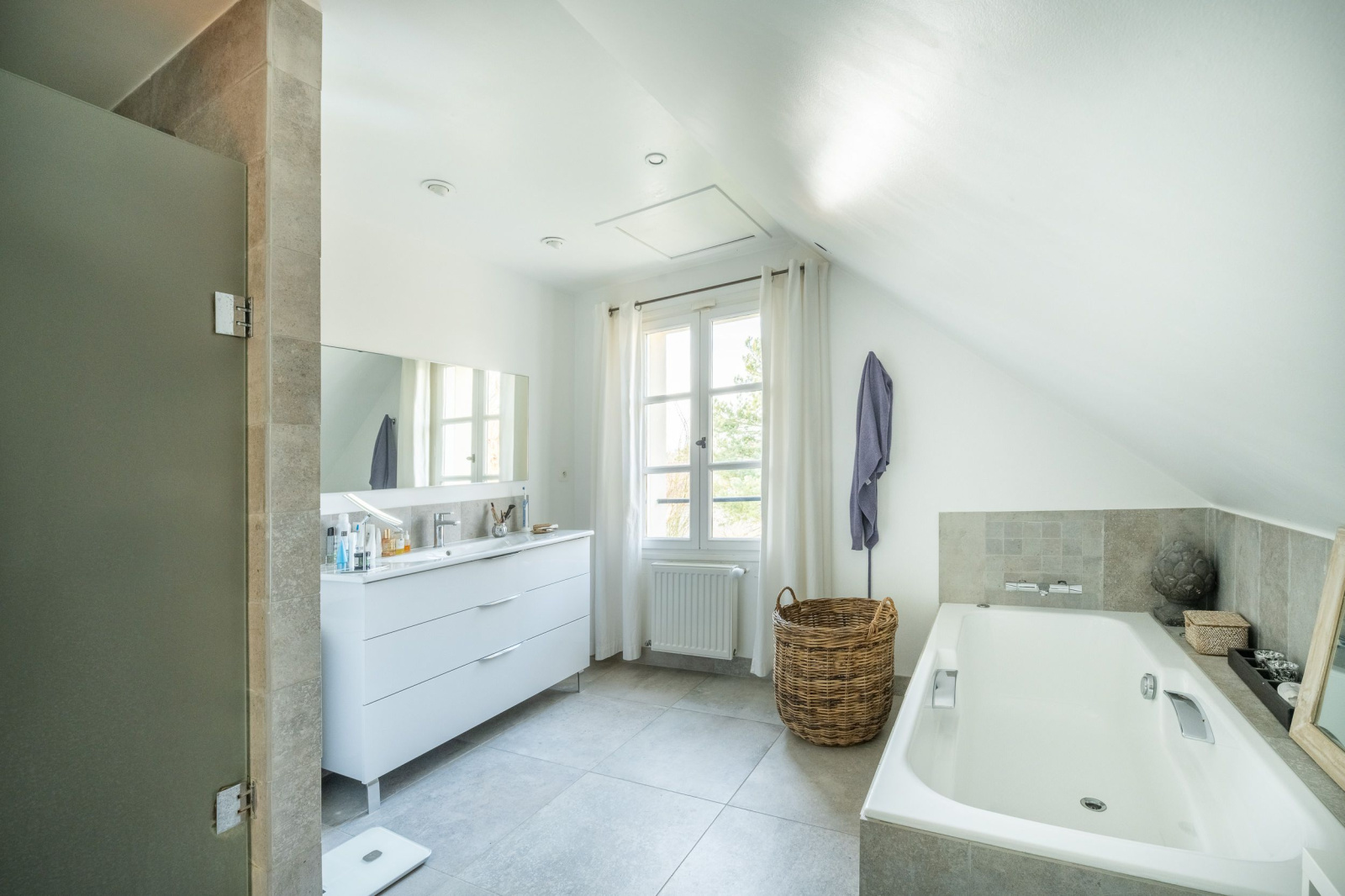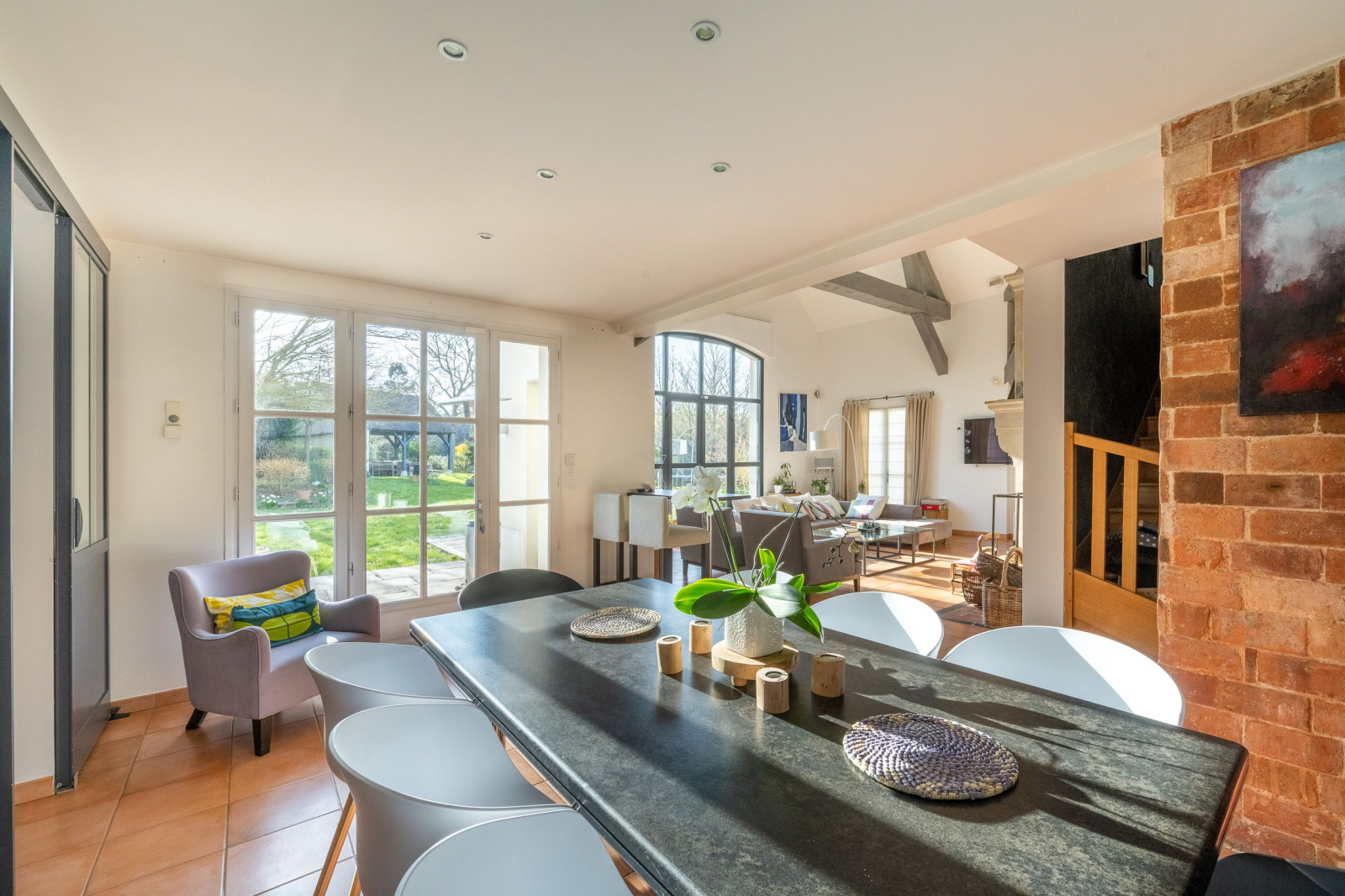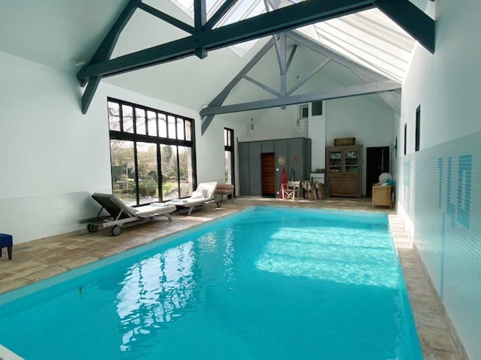 Exclusivité, à 30 km de Paris, Centre de Morainvilliers, Belle longère dotée d'un charme fou, construite en 1999 avec des matériaux de qualité. Sa surface de 305m² avec espace piscine intérieur de 75m² se pose sur un terrain paysager de 2732m². Une entrée avec vestiaire dessert une belle pièce de réception lumineuse de 60m² d'une hauteur cathédrale de 7m avec grande baie plongeant sur le jardin. Une vitre d'atelier sépare la cuisine équipée d'un piano de cuisson et d'un four à vapeur. A proximité immédiate, buanderie et grand cellier. Le rez-de-chaussée se poursuit par un spacieux bureau, une chambre et sa salle de bains. Un joli passage découvre un espace aquatique avec de grandes baies à galandage s'ouvrant sur une belle terrasse. La piscine(7x4) est complétée de sanitaires (WC, douche et lave-mains), d'un volet roulant, d'une buse de massage. Pour finir, un atelier avec son toit en verrière complète ce niveau. A l'étage, un beau palier en mezzanine avec charpente apparente, sépare l'espace parents des 3 chambres enfants et de leurs salles d'eau. La suite parentale se compose d'une chambre bénéficiant d'une double exposition, dressing et salle de bains. A l'extérieur : une charretterie avec bûcher permet de stationner deux voitures, une salle de sport et un garage pour équipement jardin. Chauffage au sol, Chaudière gaz De Dietrich, arrosage automatique, domotique, fibre, alarme, portail automatique.