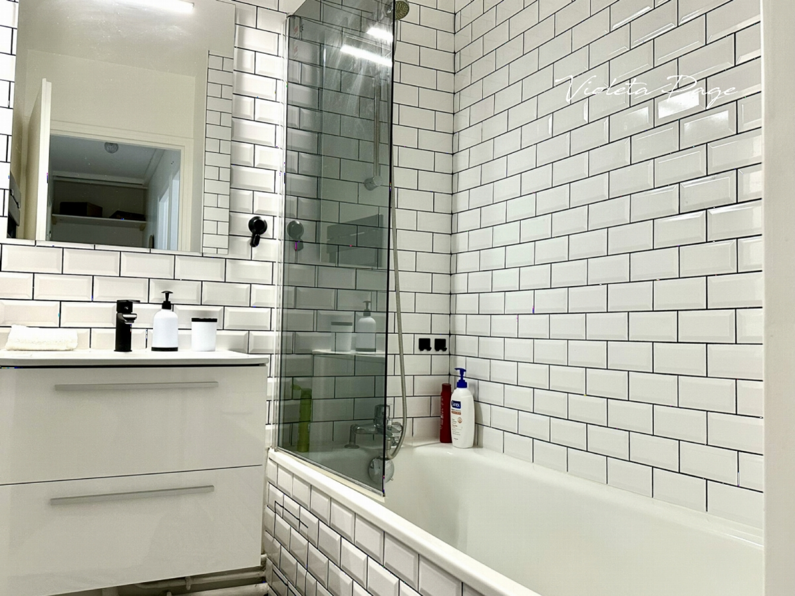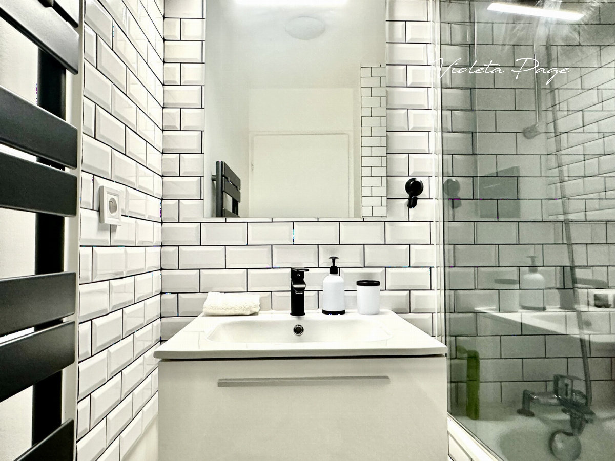 La salle de bains a été rénovée.
