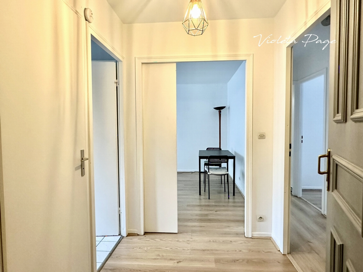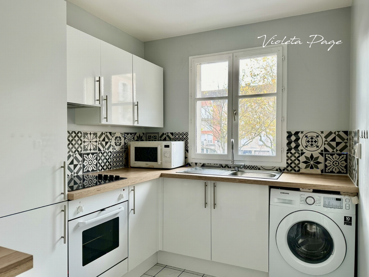 Dès l'entrée, découvrez un intérieur soigneusement agencé avec une cuisine moderne entièrement équipée, un séjour spacieux et lumineux donnant sur la Place Saint-Exupéry. L'appartement dispose également de deux chambres douillettes avec placards intégrés, garantissant un espace de vie confortable et organisé, toutes deux avec vue sur la cour intérieure.