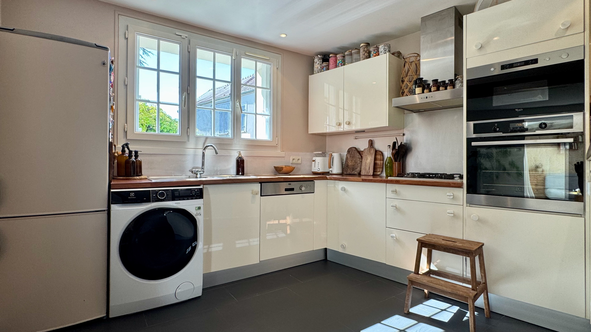 Proche de SAINT-NOM-LA-BRETECHE, en plein coeur du centre village de FEUCHEROLLES, je vous présente cette maison de village totalement rénovée en 2008 (Isolation, électricité, plomberie...) et très bien entretenue depuis. Elle allie charme et emplacement de tout premier ordre (à toute proximité des commerces, écoles et bus pour les établissement scolaires de renom des localités voisines). Ses 4 chambres (dont une "d'appoint" avec sa propre salle d'eau sous les toits), son vaste espace de vie de plus de 47m2 environ (cuisine comprise) font de cette maison un lieu où toute la famille s'épanouira. Enfin, Une cave voutée de 25m2 utiles et une terrasse pavée d'un peu plus de 7m2 environ complètent cette offre très séduisante.
