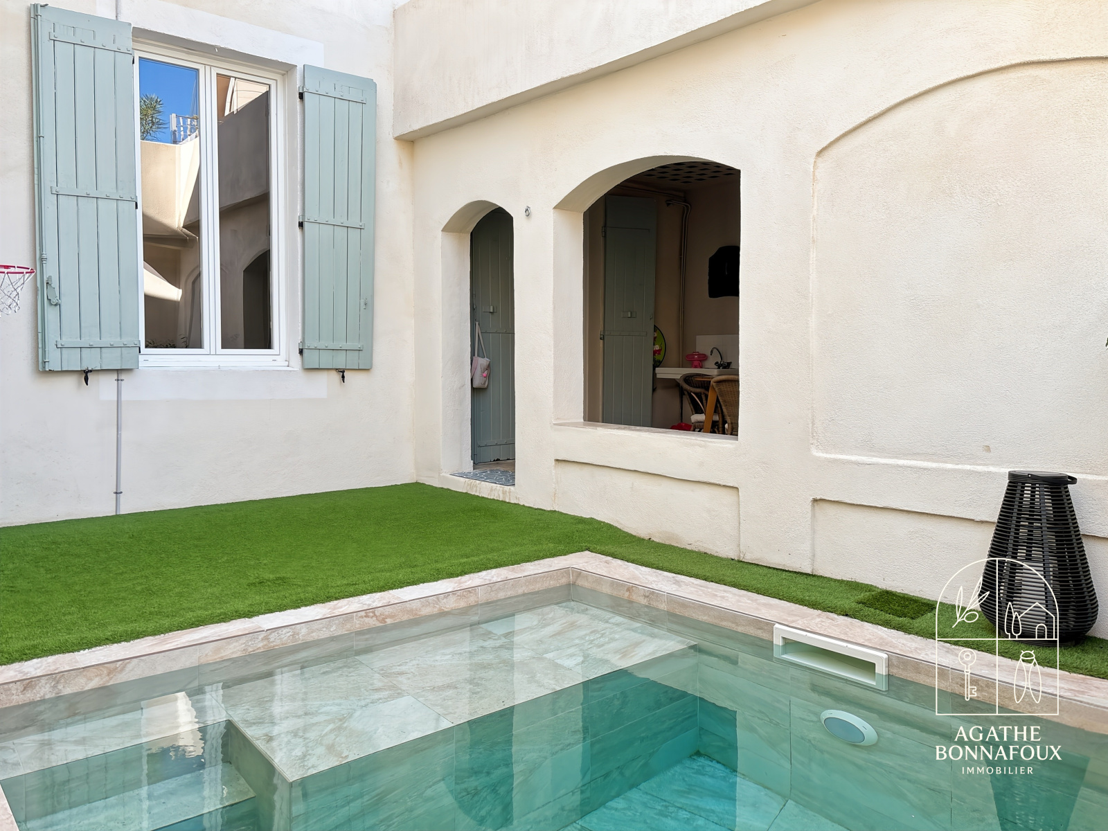 Un extérieur en coeur de ville: cette maison bénéficie d'un bassin (3x3) en traditionnel avec une terrasse couverte en prolongement idéale pour les journées ensoleillées.