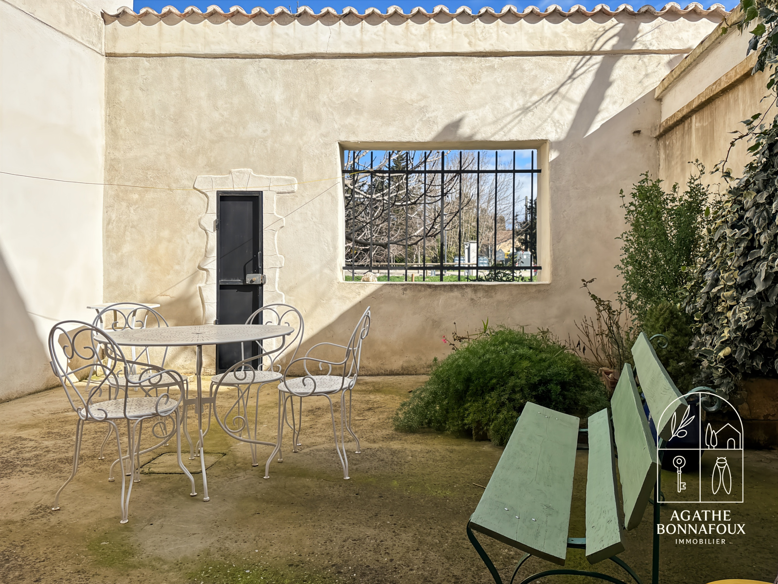Une seconde cour attenante à la cuisine constitue un espace privilégié pour profiter des journées les plus ensoleillées en toute quiétude.