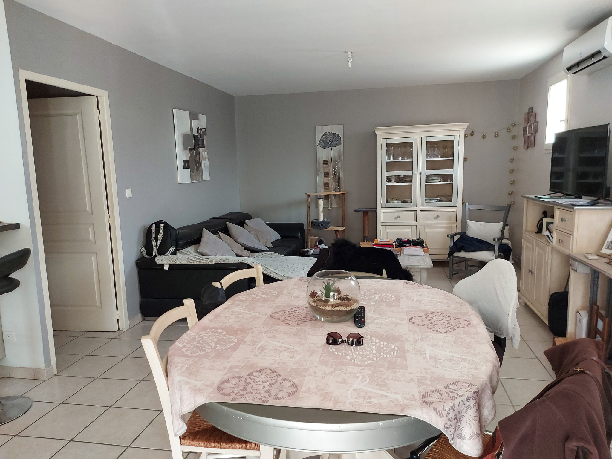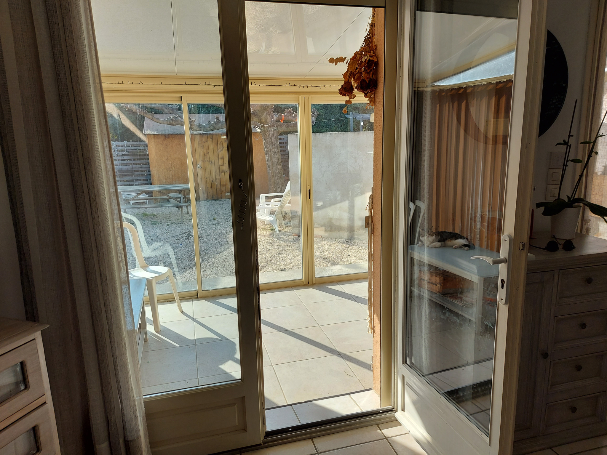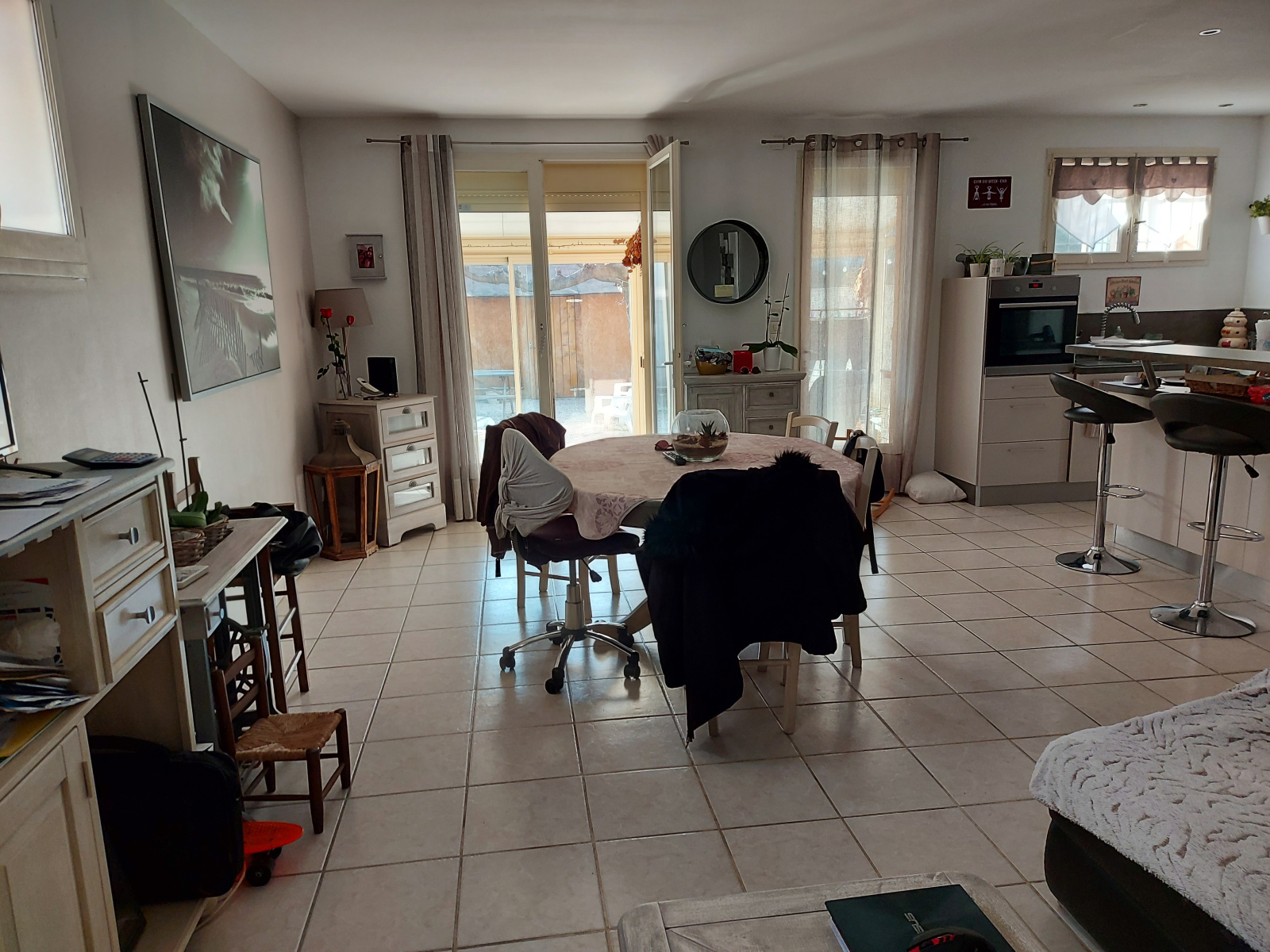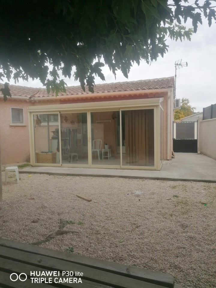 ***VENDU*** A Châteaurenard, dans quartier calme, venez découvrir cette maison de plain-pied de bonne construction, d'une superficie de 100 m2, comprenant salon-séjour avec cuisine ouverte équipée, un cellier, trois chambres dont une de 22 m2, une salle de bains, un w.c. indépendant et une véranda permettant une belle luminosité. L'ensemble sur un terrain de 244 m2 aménagé en jolie cour au Sud avec son beau murier platane, terrasse à l'Ouest au-devant de la grande chambre.