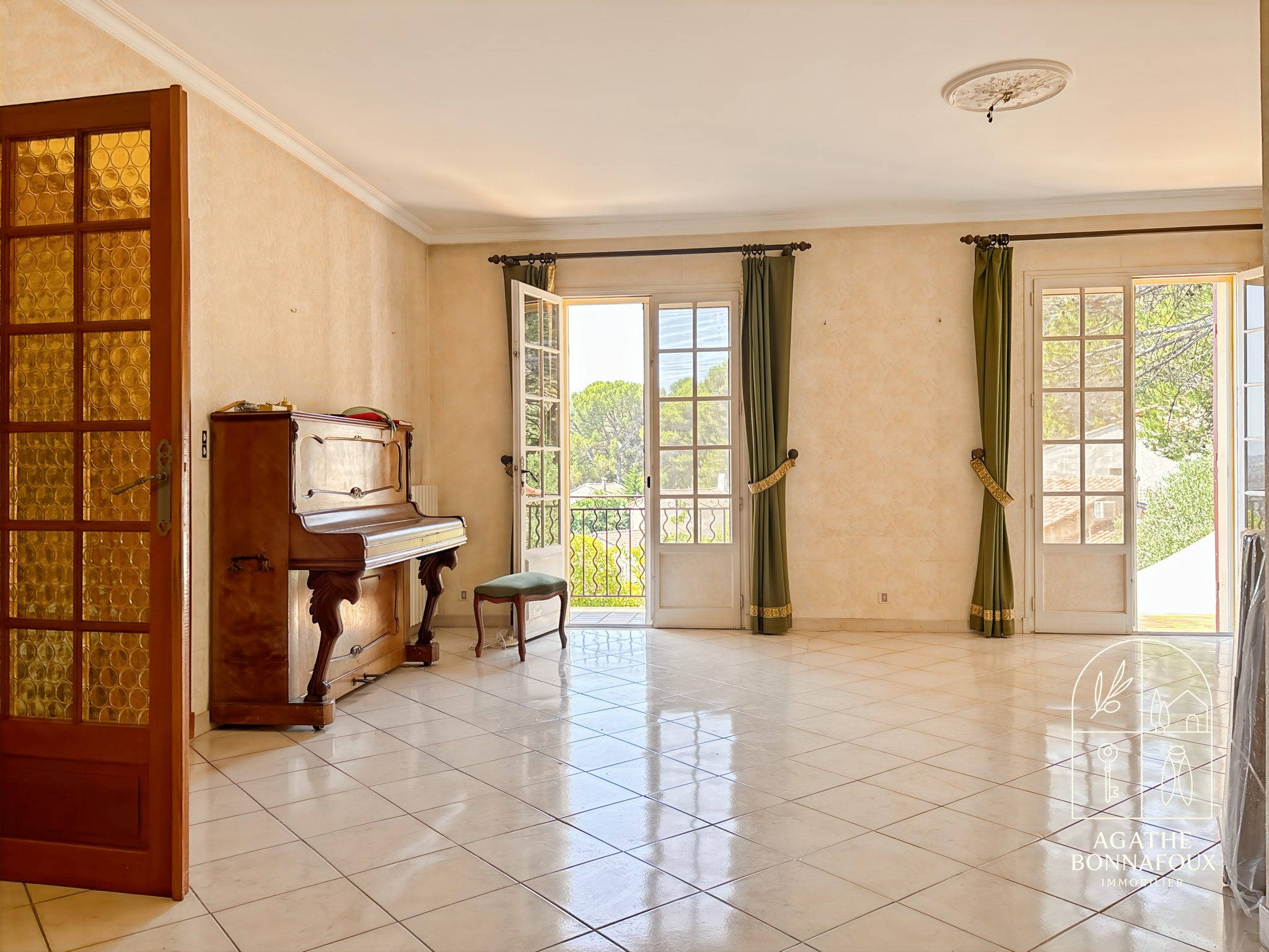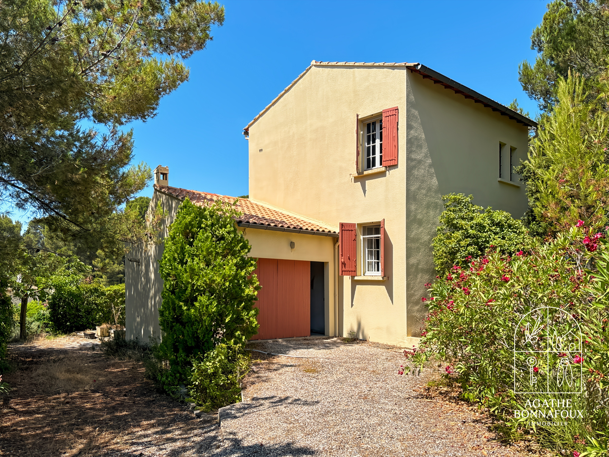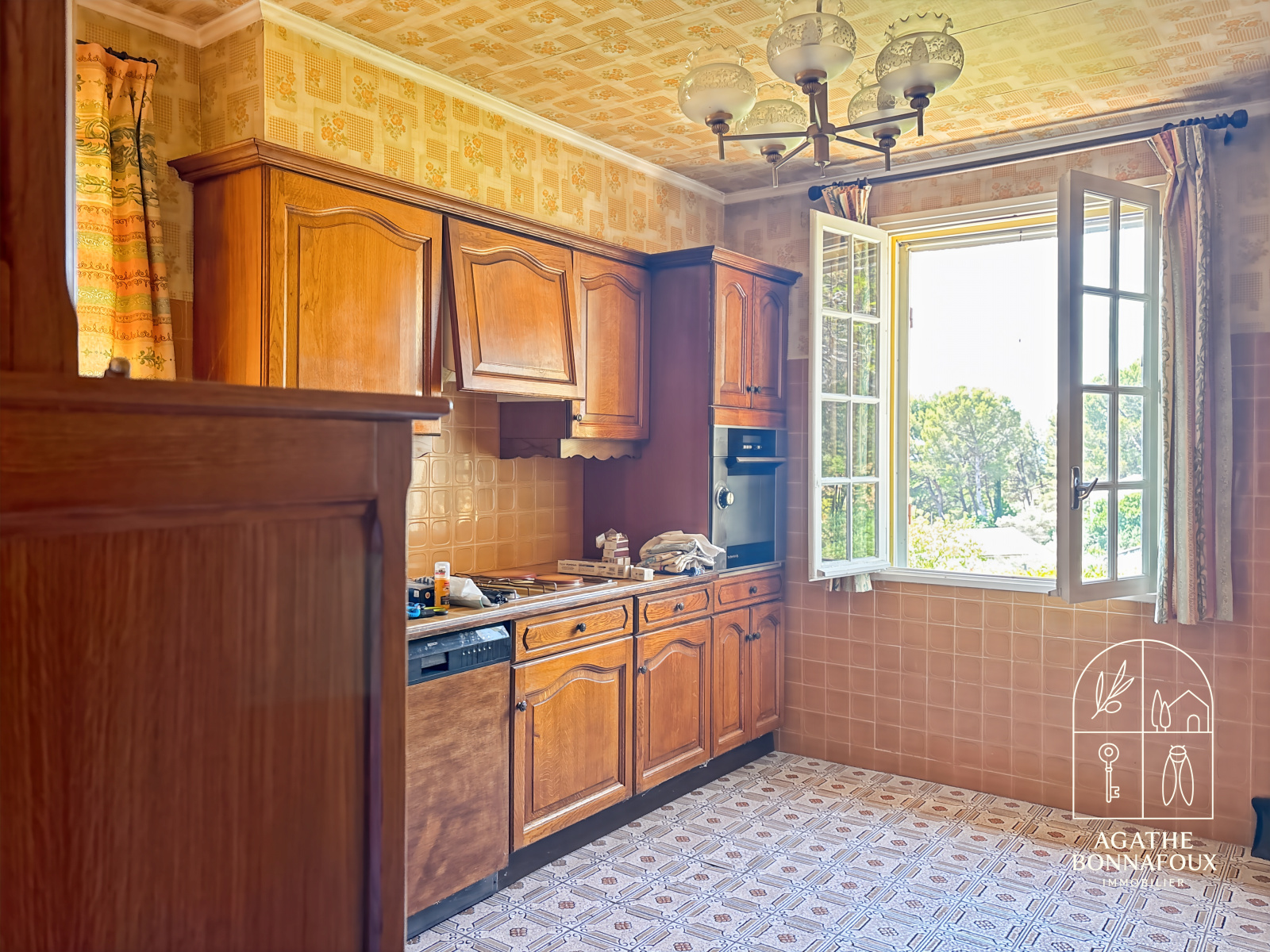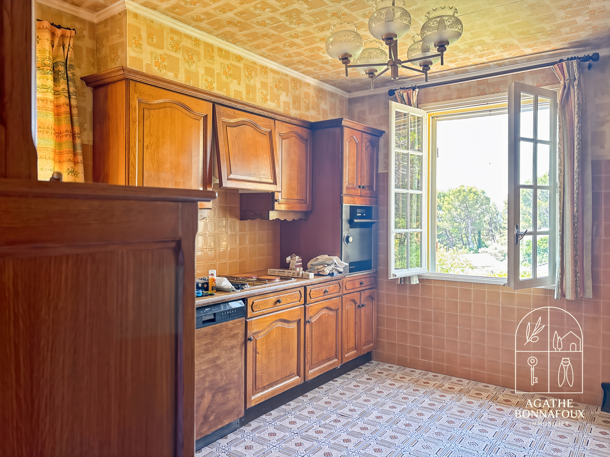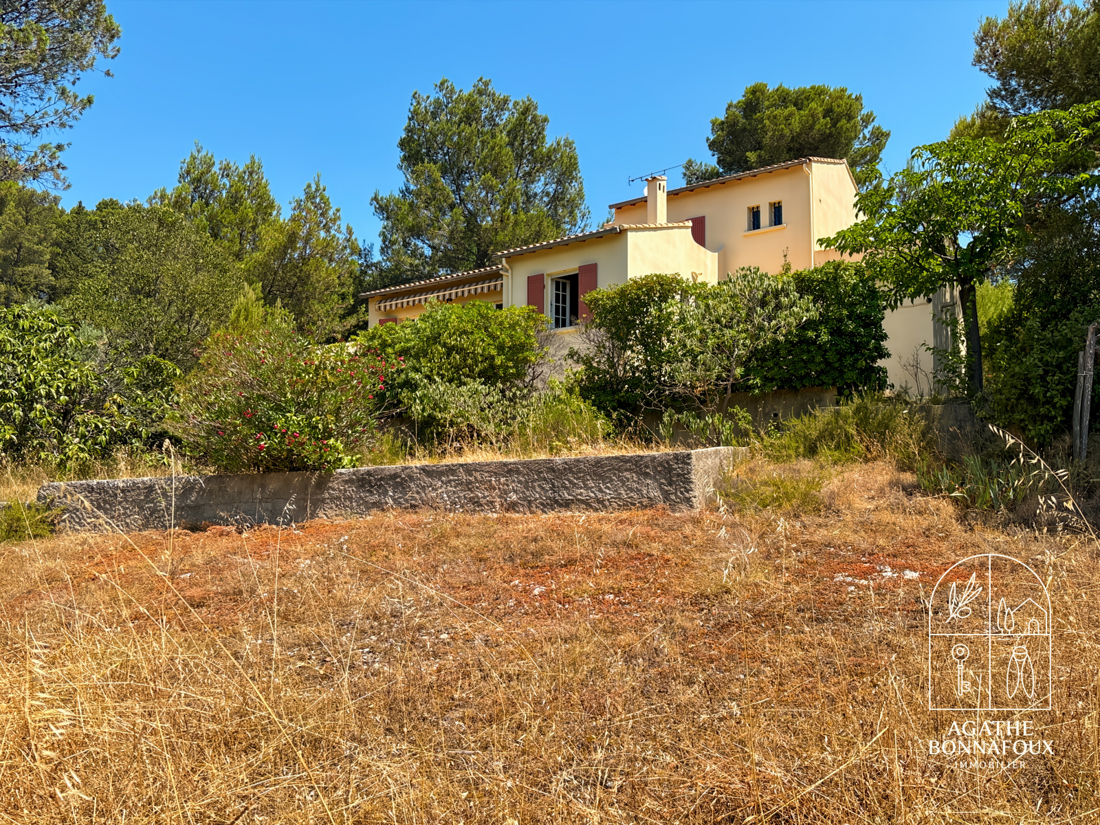 Construite sur un terrain de 1280 m2 (restanque) en position dominante et en bordure de zone naturelle celle-ci se compose :
