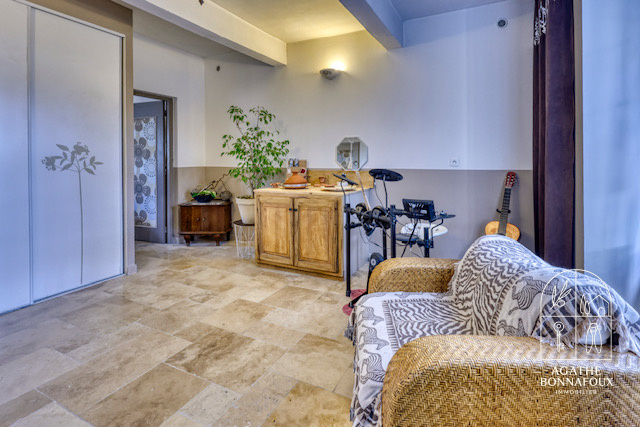 Au rdc une pièce type séjour "bis", une chambre et une salle d'eau (idéal pour loger un ascendant ou descendant en toute autonomie ou bien envisager de la location saisonniére).
