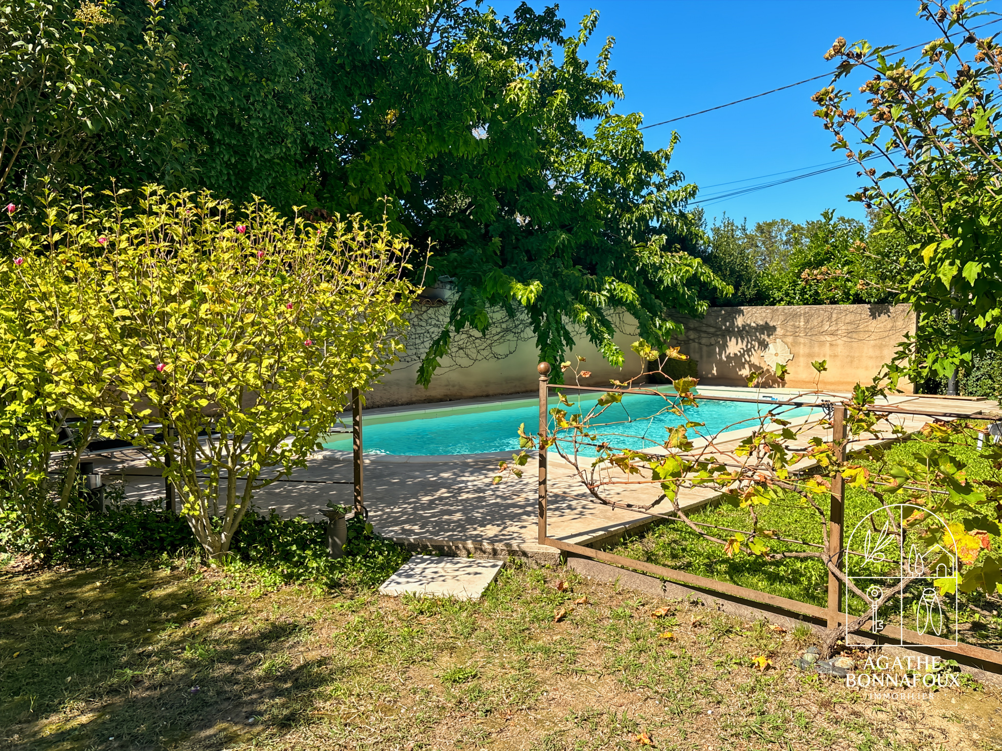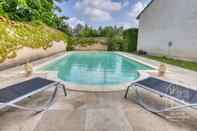A l'extérieur : une piscine 8*4 à l'abri des regards, stationnement facile, terrain clos plein sud (facile d'entretien), 2 grandes remises attenantes.