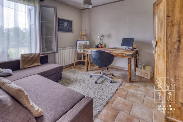 Celui-ci se compose à l'étage d'une pièce de vie, cuisine séparée équipée, 3 chambres, un coin bureau, une salle d'eau.