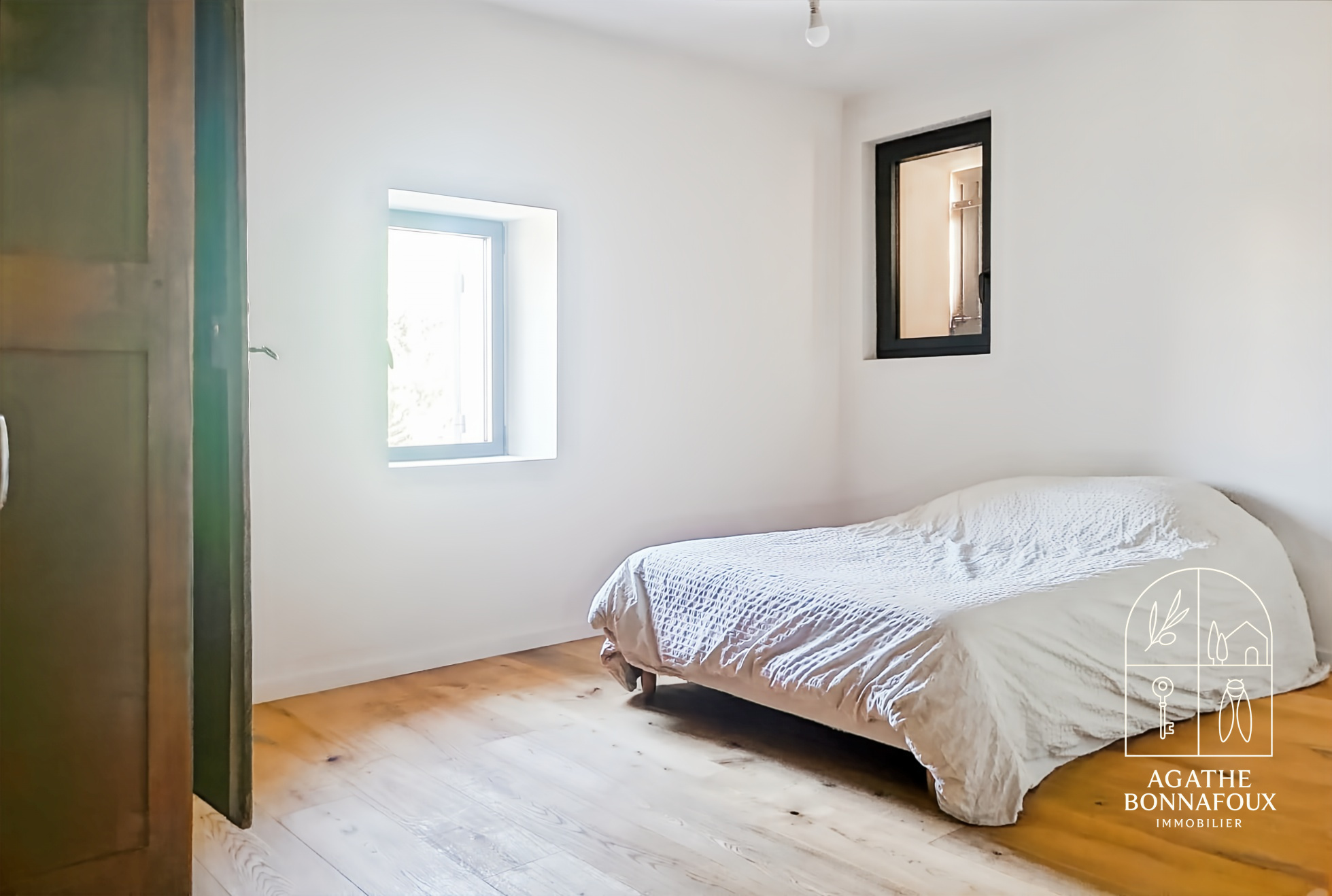En campagne tout en restant proche des commodités, venez découvrir ce mas plein de charme, édifié sur une parcelle de 1 080 m² avec son platane centenaire et sa piscine (10*5).