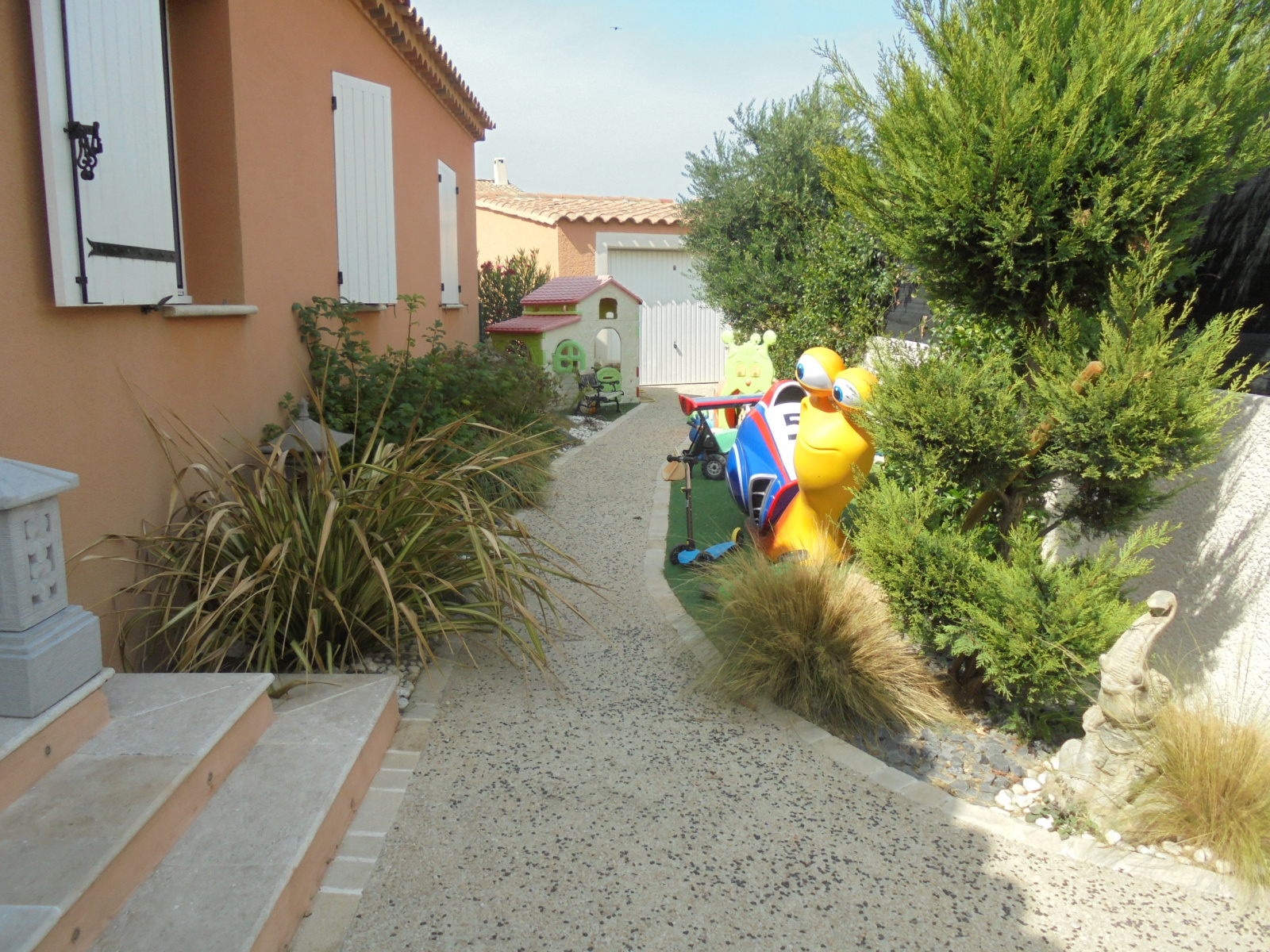 Terrain de 406 m2 clôturé avec terrasse et piscine, local technique, abris de 17 m2 avec possibilité d'extension !! Plusieurs places de parking !