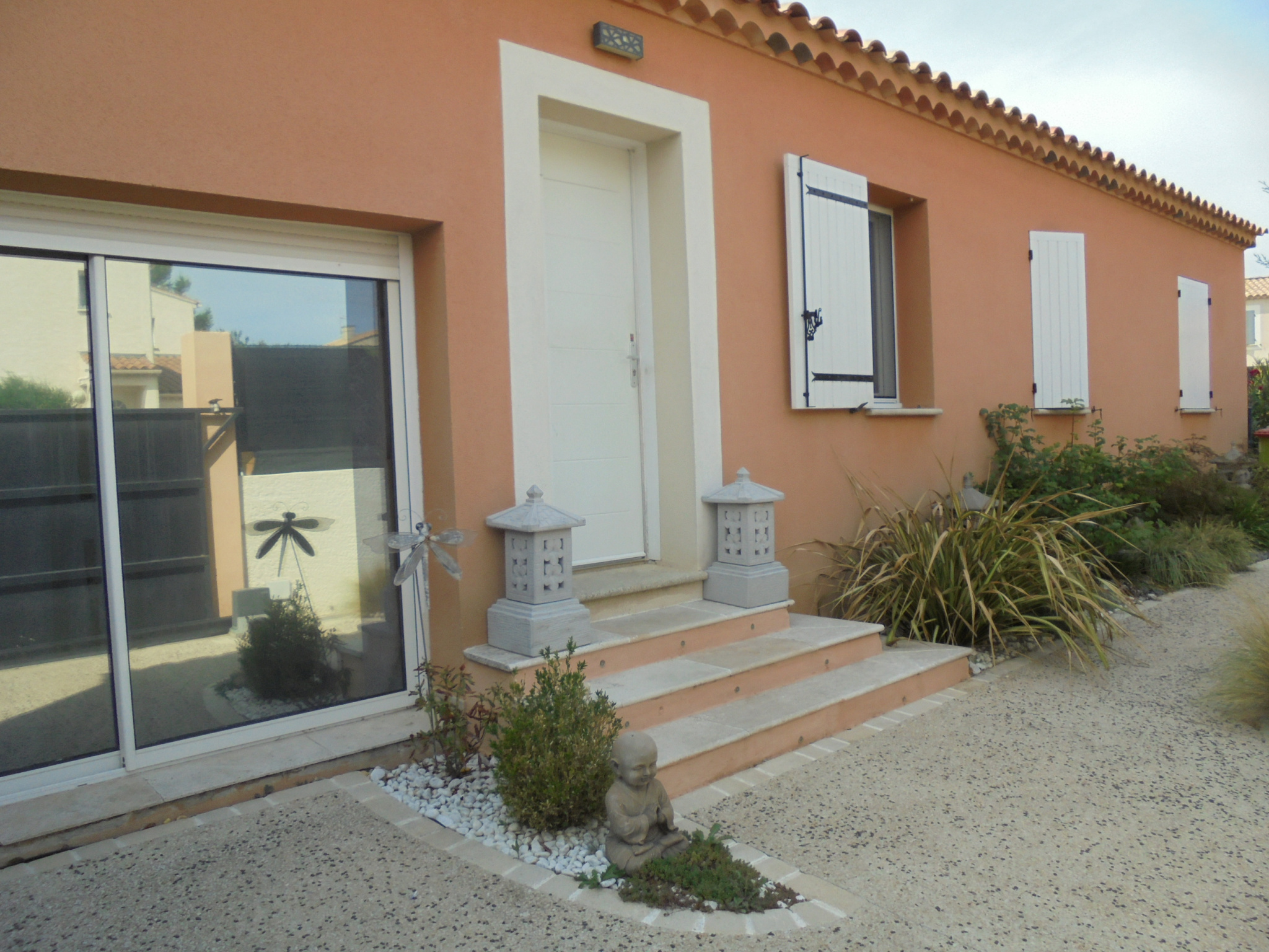 Prestations : portail électrique, panneaux solaires pour eau chaude, climatisation réversible, double vitrage.