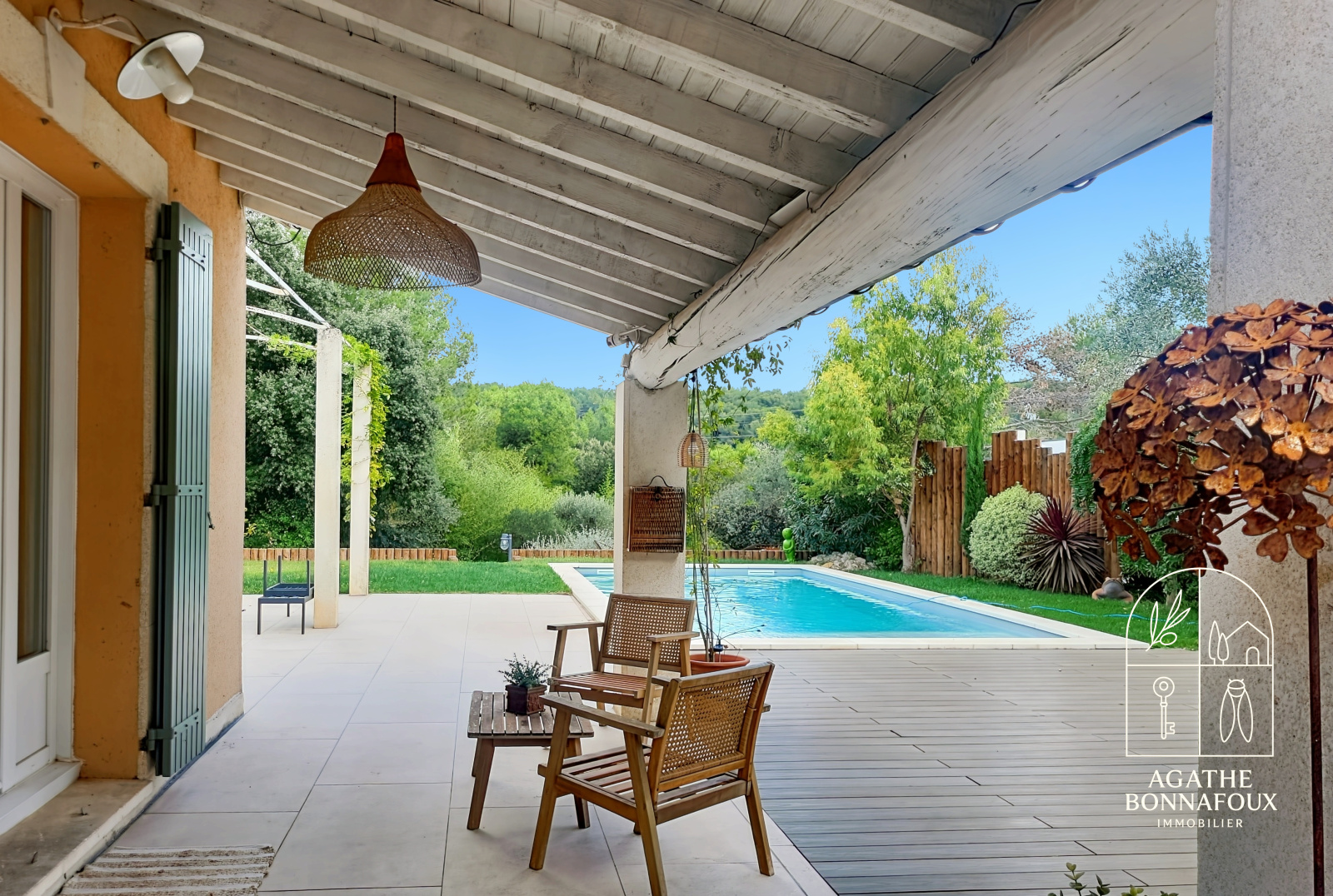 A l'extérieur la quiétude des lieux saura vous séduire, terrain clos et arboré, une belle piscine au sel chauffée, plusieurs terrasses et espace détente à l'abri des regards, un garage et un auvent complétent l'ensemble.