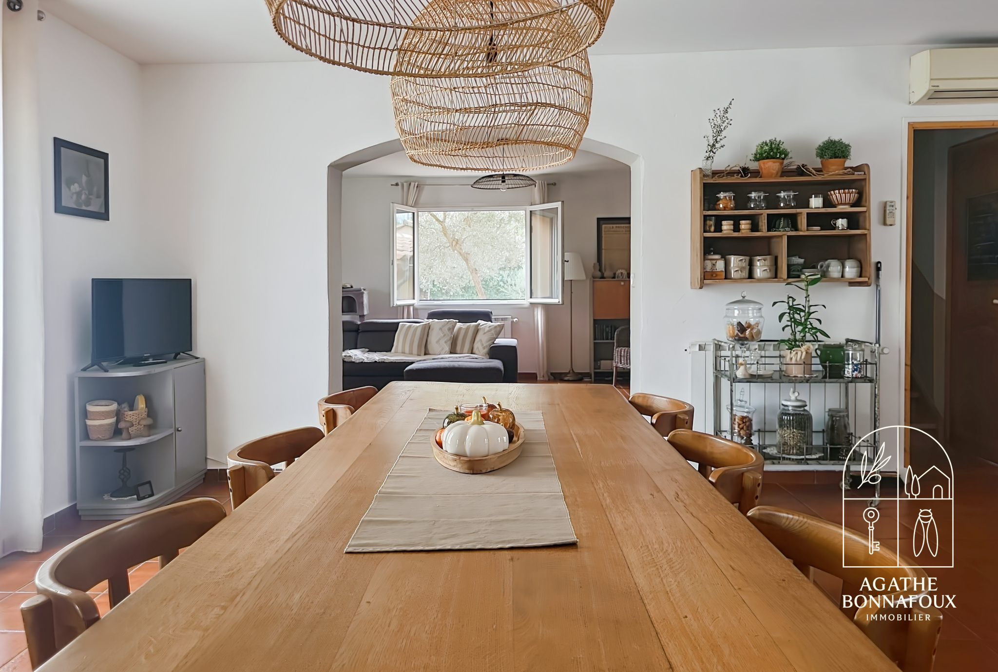 Celle-ci se compose d'une partie principale de 170 m2 et d'une dépendance attenante de 65 m2 l'ensemble sur un terrain clos et paysagé de 2600 m2 avec piscine chauffée 8*4.5.
